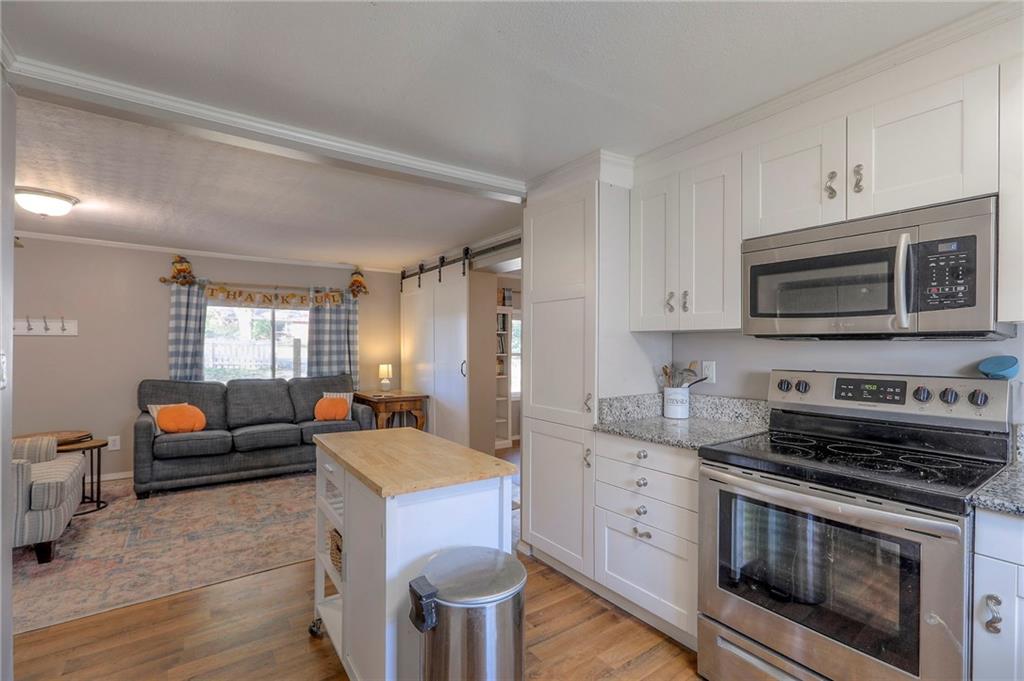 Experience the perfect blend of country tranquility and modern convenience with this beautifully renovated home. Situated on almost half an acre and backing to mature woods, this property offers both privacy and easy access to nearby amenities. This updated home backs to woods for added privacy. Step inside to find a bright, open floor plan featuring neutral décor and durable Luxury Vinyl Plank flooring throughout. The main level offers a spacious dining area and inviting living room, separated by a stylish barn door for added character. The updated kitchen has abundant white cabinetry, a pantry, and stainless steel appliances — perfect for everyday living or entertaining. Two bedrooms and two full baths are located on the main floor, while the upper-level bedroom can easily serve as a private primary suite complete with a walk-in closet. Enjoy outdoor living at its best — relax on the large covered front porch or host gatherings on the back patio, complete with a built-in stone gas fire pit and gas line ready for a grill or outdoor kitchen.