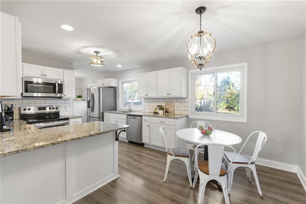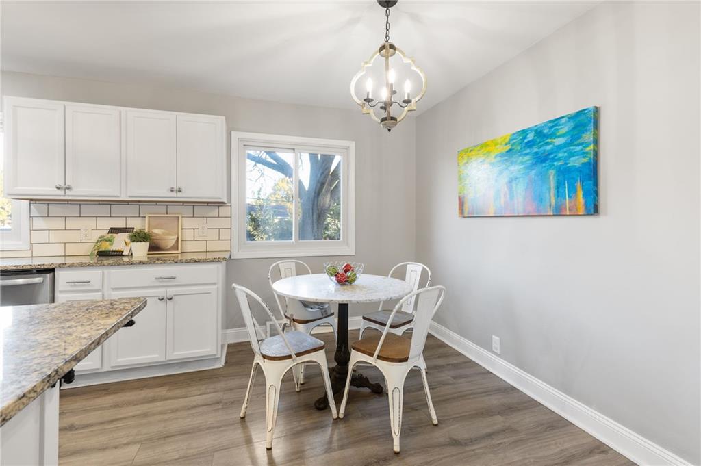 Lovely ranch with all the updates! Fully remodeled in 2021, this home has all the goodies. Newer roof, furnace, AC and sewer line! Walk in to a bright living room with feature wall that leads to the kitchen and dining with granite counters and custom cabinets! Tucked away behind the kitchen is the primary bedroom with en suite bath. 3 more bedrooms & full bath perfect for guests or office space on the other end. Enjoy a large fenced corner lot with mature trees to host or relax. Schools, groceries and anything else you need are within minutes!