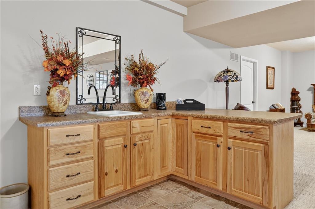 Welcome home to this beautiful 55+ maintenance-provided community. This gorgeous, landscaped property combines elegance, comfort, and functionality. Step inside to a very accommodating main level with a spacious living room with an open floor plan and abundant natural light, perfect for everyday living and entertaining. The inviting sunroom offers extra dining and entertainment space, while the kitchen boasts a stunning granite island ideal for gathering. The primary bedroom suite provides a serene retreat with plenty of room to relax. The finished basement expands your living space with a cozy family room and fireplace, a convenient wet bar, bedroom, bath, and sitting room—plus a walk-out to a large, partially covered patio. Enjoy outdoor living on the expansive deck surrounded by gorgeous greenery—this home truly has it all!