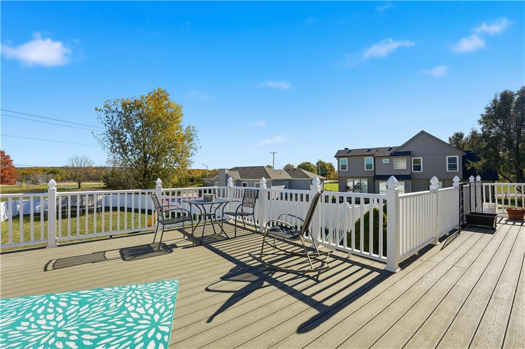 Welcome to easy living in Woodland Farms! This Reverse 1.5 story home sits on an oversized lot with no back neighbors—your own slice of peace and privacy. Inside, you’ll love the rich hardwood floors, soaring vaulted ceilings, and sunlight streaming through picture windows. Cozy up by the gas fireplace or gather in the ultra-functional kitchen—perfect for everyday living or casual entertaining. Plus, the formal dining room easily doubles as an office or play room. The primary suite feels just like home with its spacious bedroom, roomy walk-in closet, jetted soaking tub, and separate shower. A large secondary bedroom, full bath, laundry room, and a generous 3-car garage round out the convenient main level. Downstairs, enjoy a walk-out family room with newly refinished epoxy floors, two additional bedrooms, a full bath, and an unbelievable amount of storage space. Step outside to your huge composite deck overlooking a beautifully fenced, private backyard—ideal for morning coffee, evening BBQs, or just soaking up the quiet. With a brand-new roof, nearby top-rated schools, and a prime Shawnee location close to shopping, dining, and highways—life here truly couldn’t be easier.