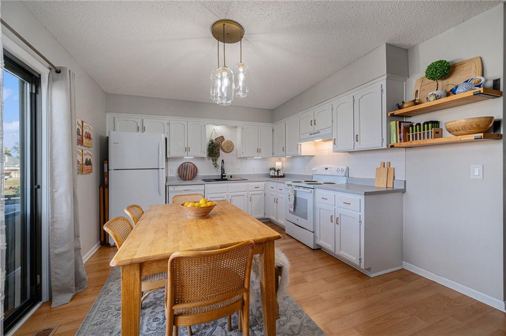 Turnkey Townhome with Pond Views in Smithville! This charming 2-bedroom, 1.5-bath townhome is truly move-in ready and filled with thoughtful updates throughout. Step inside to a bright living room featuring luxury vinyl laminate flooring and freshly painted walls. The flooring continues seamlessly into the kitchen, where you’ll find white painted cabinets (2021), a new sink (2023), and all appliances (2020) included. A sliding glass door opens to a brand-new deck, railing, and stairs, offering a peaceful view of the community pond—perfect for your morning coffee or evening unwind. Throughout the home, you’ll notice new lighting, hardware, hinges, and doorknobs, giving every space a fresh, modern touch. The high-traffic carpet on the stairs and upper level was replaced in 2021, and the walls were freshly painted the same year. Upstairs, the primary bedroom offers generous space and his-and-hers closets, while the updated full bath includes a painted vanity, new light fixture, faucet, and mirror. The lower level features a convenient pantry, laundry area, storage space, and single-car garage access with durable high-traffic carpet (2021) on the stairs. Located close to all the shopping, dining, and recreation that Smithville has to offer. Don’t miss your chance to make it yours!