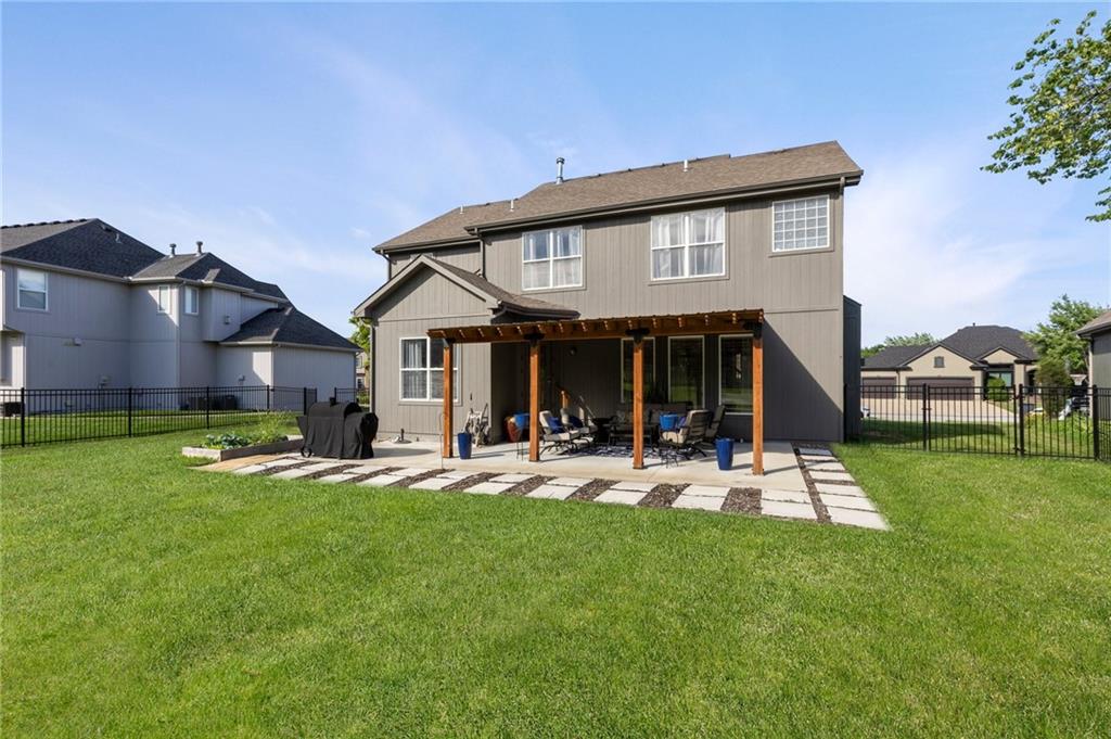 Move-in ready, spacious, and stylish, this 5-bedroom, 4.5-bath home in Lee’s Summit’s sought-after Monarch View neighborhood checks every box. Nestled on a peaceful lot, it offers the perfect balance of comfort, space, and community living. Step inside to find a bright, open layout with thoughtful updates throughout. The kitchen is a showstopper, featuring a large granite island, walk-in pantry, stainless steel appliances, and plenty of cabinet space. The adjoining family room is filled with natural light and designed for both everyday living and entertaining. Recent updates include new flooring and fresh paint in several areas, adding a modern and welcoming feel. The primary suite is a true retreat with a cozy sitting area, spa-like bath, dual vanities, and a walk-in closet. Each additional bedroom offers great size and flexibility for guests, family, or office use. The finished lower level is ready for fun and relaxation, complete with a theatre room, plenty of living space, and an additional bedroom with a closet and egress window. Outside, enjoy your large fenced backyard from the covered patio, perfect for relaxing, entertaining, or watching the seasons change. Living in Monarch View means resort-style amenities right at your doorstep: a pool with slide and splash zone, stocked fishing ponds, walking trails, playgrounds, and a clubhouse with an event room. Located in the Lee’s Summit West High School district and minutes from I-49 and I-470, this home offers both convenience and lifestyle. Don’t miss this opportunity, schedule your showing today and see why this home stands out from the rest!