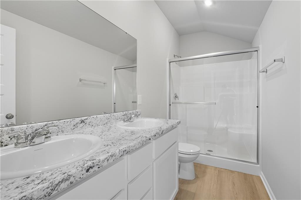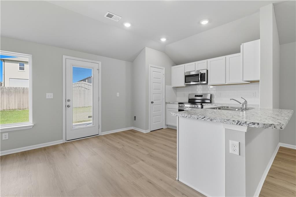 Welcome to the Armstrong Plan – a thoughtfully designed 3-bedroom, 2-bathroom home built on a slab foundation with an attached 2-car garage. This open and functional floor plan is ideal for comfortable living and easy entertaining. Upon entry, you'll be greeted by a spacious living room that seamlessly flows into the peninsula-style kitchen, complete with seating and open access to the dining area. The layout provides a warm and inviting space perfect for gatherings or everyday living. Two bedrooms are conveniently located near the front of the home, adjacent to the second full bathroom—ideal for family, guests, or a home office setup. The private primary suite is situated at the rear of the home, offering a spacious retreat with a walk-in closet, double sinks, and a walk-in shower. With modern features, practical design, and quality craftsmanship, this home offers both comfort and convenience.