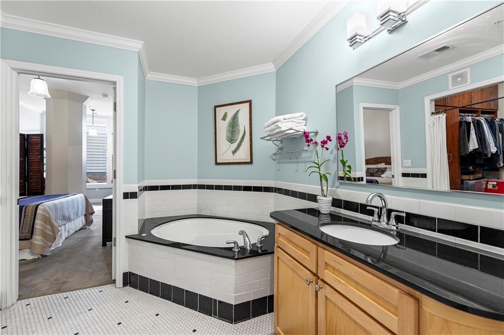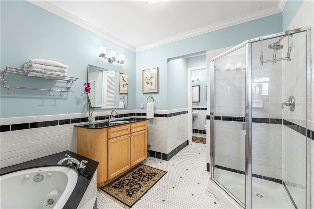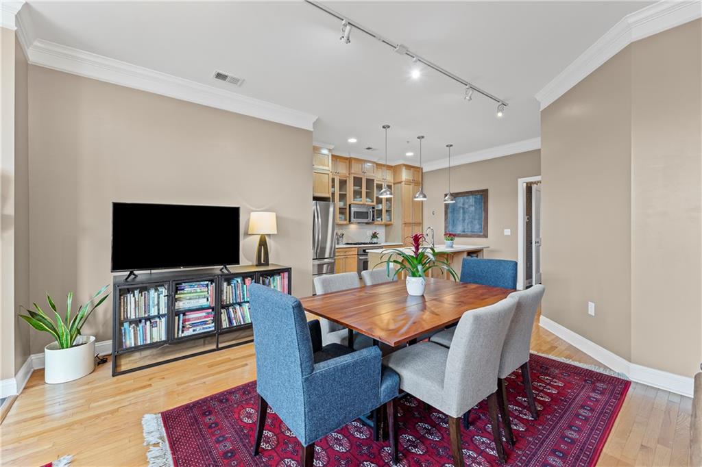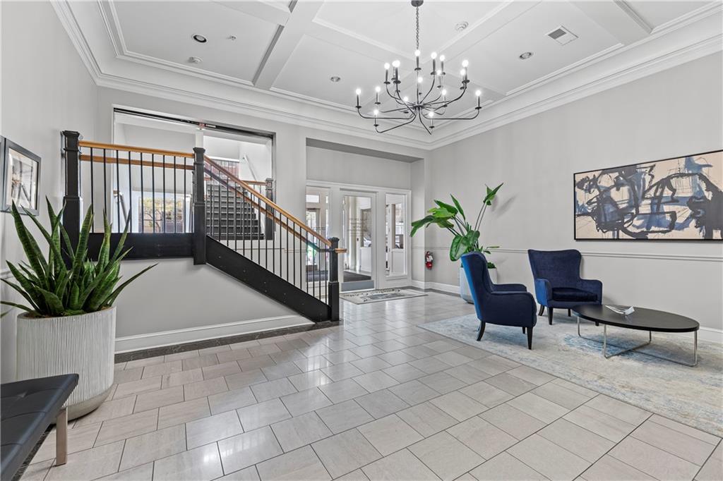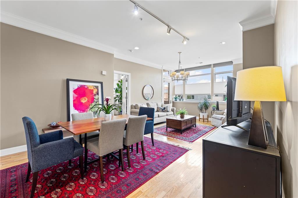 Experience elegant city living in this spacious condominium located in the historic Greenlease Cadillac building. The open floor plan is filled with natural light, creating a warm and inviting atmosphere throughout. The kitchen features a large island with seating, tall cabinets that extend to the ceiling for extra storage, and stainless-steel appliances that stay with the unit. The living room offers timeless character with its gas fireplace and opens to an private covered patio—perfect for relaxing, entertaining or gardening. A separate dining area provides additional space for gatherings. The spacious primary suite accommodates a sitting area and home office. The luxurious bath includes classic subway tile, a jetted tub, and a separate walk-in shower. The customized walk-in closet offers excellent storage and washer/dryer. The second bedroom, den, or office is conveniently located off the beautiful entry hall. Additional highlights include high ceilings, crown moldings, and hardwood floors throughout. Assigned garage parking included in the HOA. Enjoy the best of Union Hill—just steps from restaurants, coffee shops, bars, and shopping. The nearby streetcar provides easy and convenient transportation.