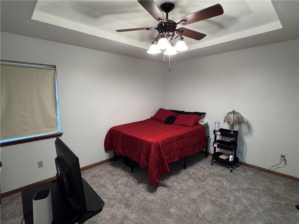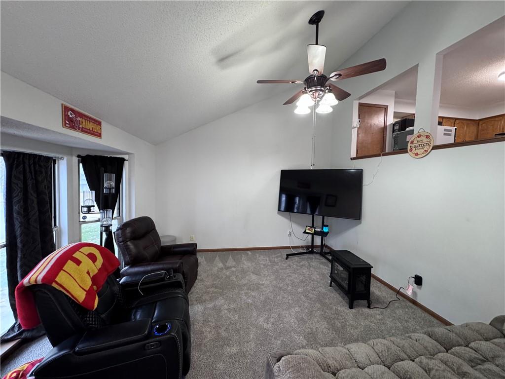 Welcome to this beautiful Rolling Meadows neighborhood of Leavenworth! Step inside to a large, light-filled living room with vaulted ceilings, creating an open and inviting feel. Kitchen with tile countertops opens to dining room and features pantry, plus new dishwasher, sink and cooktop with double oven. Three comfortable bedrooms on the upper level offer flexibility for sleeping, office space, or guests. The primary suite features private bath, a walk in closet and updated shower. An additional updated shower in the hall bathroom. The finished basement provides a second living space—ideal for a second family room, play area, home gym, or media room, plus a fireplace, half bath and 4th bedroom. Enjoy outdoor living in the fenced backyard with mature trees, offering both shade and privacy. Whether relaxing, gardening, or entertaining, this yard is ready for you. New carpet in living room, upper level bedrooms and stairs, Newer roof, gutters, front door, storm door, garage openers, and garage doors add peace of mind and low-maintenance ownership. Bonus upgraded electrical panel to 200 amp and new water softener, plus water heater with expansion tank. Extra deep garage with side exterior door, perfect for storage or workshop. Nestled on a cul-de-sac, near local schools, parks, shopping, Fort Leavenworth, and highway access, this home delivers convenience and comfort in one package. Schedule to see today!