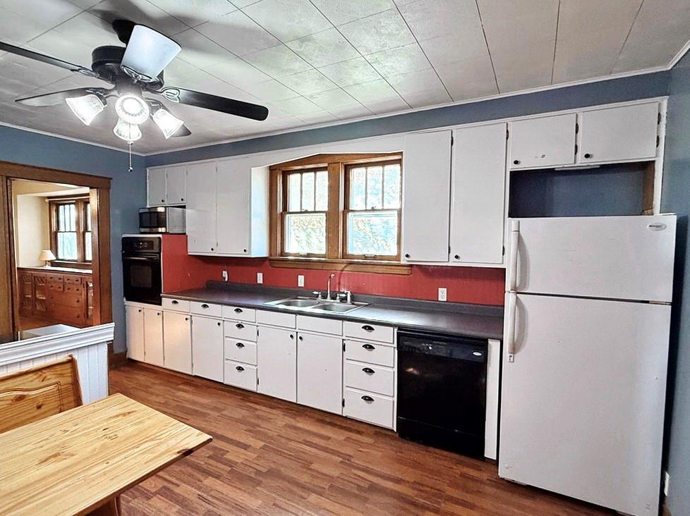 Charming Craftsman Style Home for Sale in the Heart of El Dorado Springs, MO for Sale. This classic home features everything you would expect from the beloved craftsman style. Prominent tapered beams support the classic gable roofline above the wide front porch. The artistic brick around the porch also accents the steps leading up to the home. The curb appeal is finished with the historic rock wall that borders the north and east sides of the home, making this home perfectly fit the surrounding downtown El Dorado Springs aesthetics. Inside, the large living room opens nicely into the spacious formal dining room. These spaces hold to the craftsman features including solid wood floors, tapered beams, decorative moldings, brick fireplace, and built-in furniture elements such as window seats, benches, & bookcases with decorative leaded window doors. The surprisingly spacious home boasts over 2,500 finished square feet on the main level and upstairs. There are 4 bedrooms with a possible 5th that could also be used as an office or den. Three full bathrooms include one on the main floor and 2 upstairs, ensuring maximal functionality for residents and guests. As a bonus, a cellar basement offers storage, shelter from storms, and peace of mind. Behind the home is a partially fenced backyard for privacy and a carport providing convenient parking and outdoor storage. Don’t miss your opportunity to own a truly beautiful and historic home that is full of modern comfort and function.