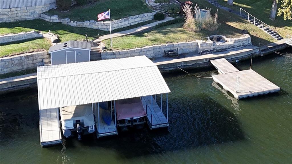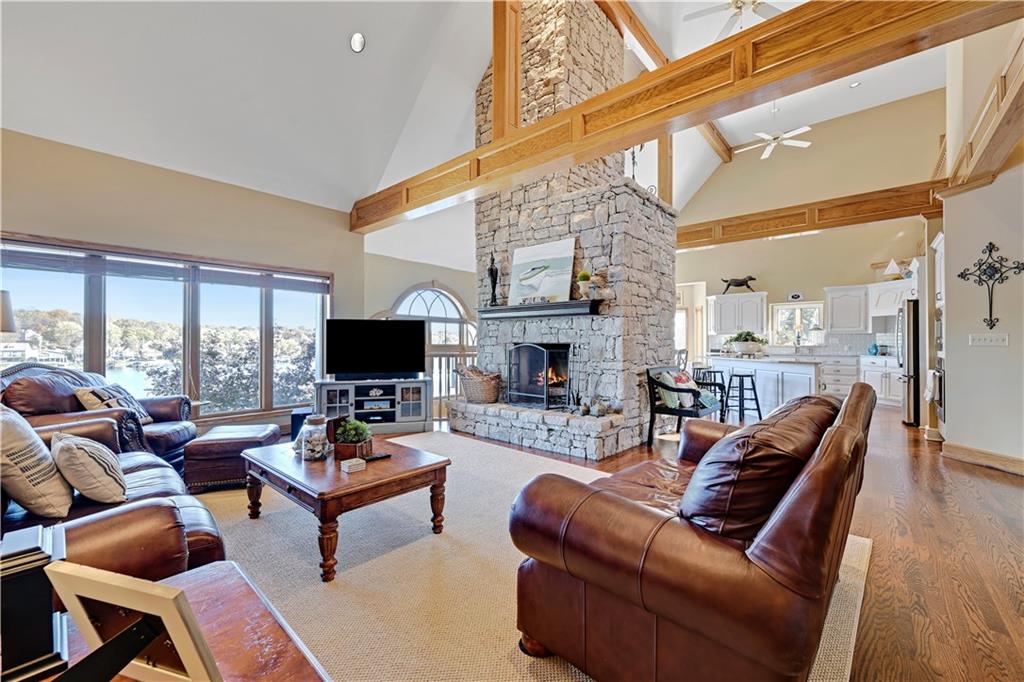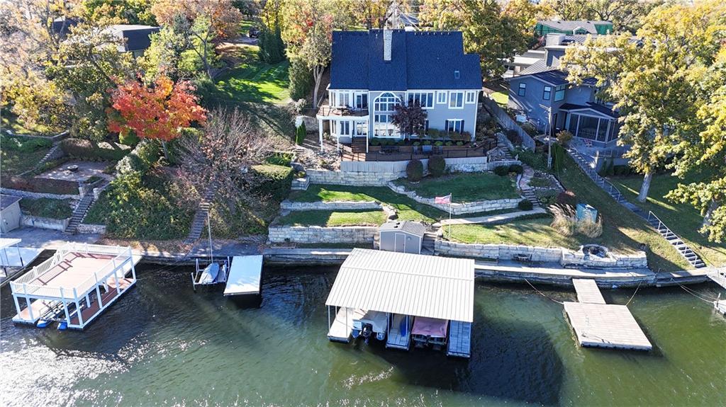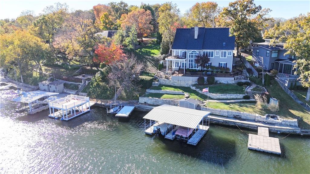 Welcome to 93 L Street in Lake Lotawana, Missouri. This spacious lakeside property is positioned at the mouth of Bandit Bay and sits on approximately 1.5 lots, offering expanded outdoor space and multiple dock structures for exceptional lake access and water views. Step inside to soaring vaulted, open-air ceilings, generous natural light, and multiple gathering areas ideal for hosting family and friends. The home features more than 4,400 square feet of finished living area and with 4 bedrooms and 3.5 baths, this home offers space for everyone! Private suites, large common areas, and the easy flow indoors and out makes this a home for entertaining. Multiple dock structures provide unmatched convenience for boating, swimming, and making the most of the Lotawana Lifestyle. Large windows and open-concept design elements allow natural light throughout the home and highlight views of the surrounding lake along. Paired with floor to ceiling fireplaces, this is the perfect combo to create that cabin feel. The lower level walk out features 10-foot tall ceilings and an additional full kitchen, adding volume and flexibility for recreation, guests, or extended living. Additional features include ample lake toy storage, generous sized pump house at the waters edge, and flexible living spaces that can be customized to meet a variety of needs. This is a rare opportunity to own a sizeable property in a highly desirable location within Lake Lotawana. Whether you’re searching for a full-time residence or a lake escape with room to play, 93 L Street delivers the space, location, and water access that make Lotawana truly special.