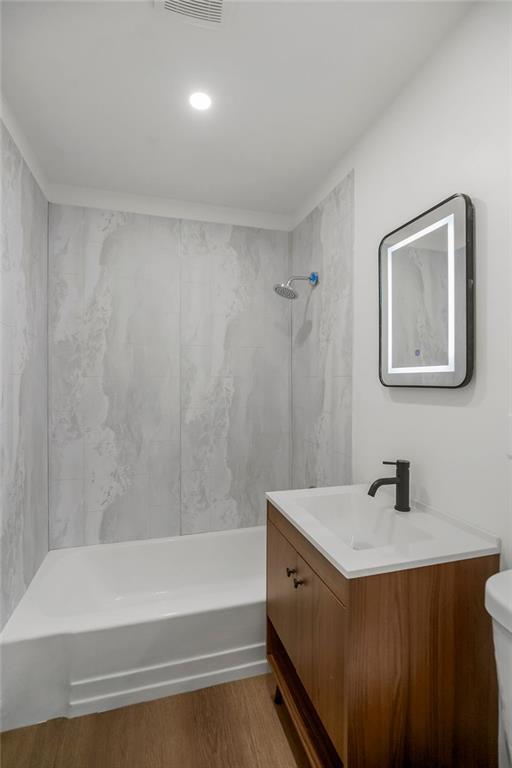 Beautifully renovated from top to bottom! This full rehab offers a custom-designed kitchen with modern finishes, complemented by refinished hardwood floors and LVP flooring in the kitchen and both baths. The primary suite features a walk-in closet and spa-inspired bath with a walk-in shower and double sink vanity. Fresh interior and exterior paint, new windows, and a newly installed paver patio and front porch enhance both comfort and curb appeal. Additional updates include HVAC service, duct cleaning, and complete pest treatment. Enjoy the large, flat backyard with mature trees and no rear neighbors—a cul-de-sac sits just beyond the back fence for added privacy. New landscaping completes this move-in-ready home!