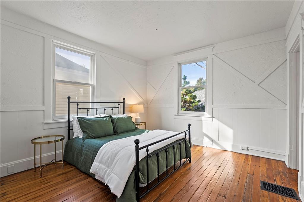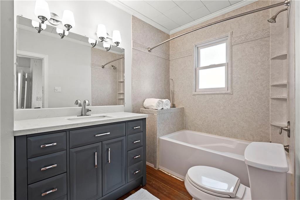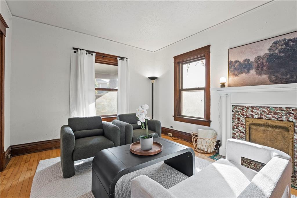 The timeless curb appeal of this early 1900s Kansas City shirtwaist starts with its front porch and detailed brickwork. New James Hardie Siding was installed to maintain the turn-of-the-century aesthetic. Inside, refinished original hardwoods stretch across the main level, setting the stage for the home’s historic charm. The grand staircase and formal entryway showcase the craftsmanship of the era. The main floor features a spacious living room with a green-tiled fireplace, a large dining room framed by a bay window with original trim, and a galley kitchen with brand-new countertops. An added full bathroom completes the first floor. Upstairs, you’ll find three well-sized bedrooms and an updated full bath, plus a partially finished attic—perfect for a playroom, office, or studio. Just steps from Volker shops and restaurants, this home blends historic character with modern updates and is ready for its next chapter.