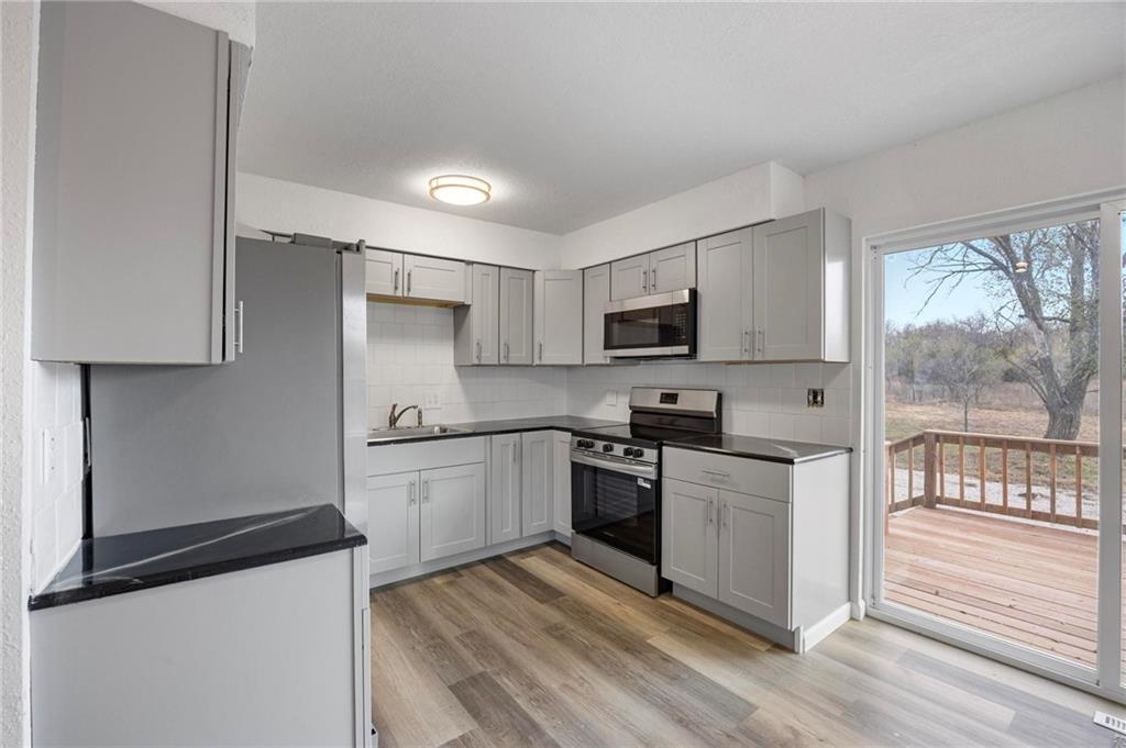 Beautifully updated and move-in ready, sitting in the middle of a peaceful 3 acres! This 3-4 bedroom home offers style, comfort, and space for everyone! Featuring a fully renovated interior, the house boasts modern finishes, neutral tones, and an open and inviting layout. The kitchen and bathrooms shine with contemporary updates, while the spacious living areas and large patio and deck areas provide the perfect place to relax or entertain, both inside and out. The main floor houses two bedrooms and a full bath, while the lower level offers a second living space, a third bedroom, second full bathroom, and a versatile nonconforming bedroom—ideal for a home office, guest suite, or flex space. The roomy 2-car detached garage provides room for vehicles plus plenty of extra space for hobbies, projects, or storage. With tasteful updates throughout and a great big yard to enjoy, this home is ready for you to call it your own!