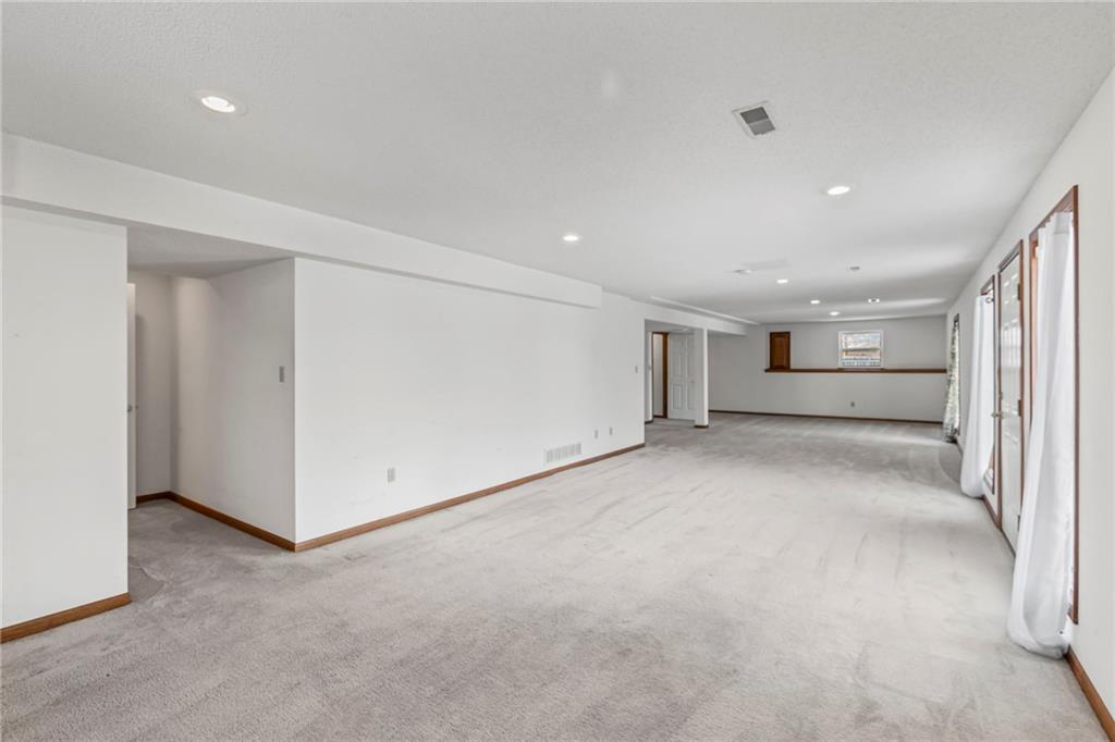 You do not want to miss this adorable true ranch home, offering three bedrooms and three bathrooms, nestled in a quiet cul de sac in Woodbury Park…and just a short distance from Lees Summit North High School! This home has been lovingly lived in and it shows. Natural light pours in through every room, the vaulted ceilings and cozy fireplace create such an inviting feel, and the clean neutral palette makes it so easy to make the space your own. The kitchen is spacious and functional with plenty of cabinet storage, and the bump out window above the sink is such a lovely feature for plants or decor. Even better, accessing the kitchen directly from the garage makes the task of unloading groceries an absolute breeze. The bedroom layout is thoughtful and comfortable, with a hall bathroom serving the two secondary bedrooms and the primary suite offering its own private ensuite. The walkout basement adds even more usable space with a full third bathroom and room for a home office, recreation, entertaining, or all of the above! Outdoors, you will love the established and thoughtfully placed landscaping. Enjoy the view of it all from the deck, which was replaced in 2019 and refreshed in August 2024…with a full power wash, restain, and seal! Major updates include: A/C replaced in August 2024, furnace replaced in January 2022, new microwave installed in October 2025, and substantial driveway repair in November 2025. Beautifully maintained and move in ready, this home truly delivers comfort, updates that matter, and a fantastic location!