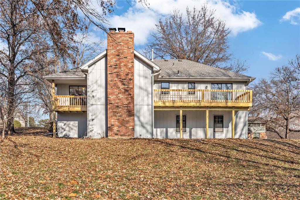 Welcome Home to this well maintained ONE-OWNER HOME, nestled on a generous .41-acre lot that backs to peaceful treed green space. This residence offers privacy and room to breathe. Step inside to a soaring vaulted Living room centered around a classic brick wood-burning fireplace flanked by custom built-ins and bookcases. Sliding doors open to the first of two brand-new decks — ideal for friends and family gatherings with nature as your backdrop. Adjacent is a sunny formal Dining room with direct access to the second new deck a perfect spot for morning coffee. The open flow continues into a bright eat-in Kitchen boasting stainless steel appliances, abundant cabinetry and counter space. The primary suite featuring striking exposed wood beam ceiling detail, walk-in closet and en-suite. Two additional bedrooms, a full bath and convenient main-floor laundry complete the upper level. The walk-out Lower-level Family room impresses with a second fireplace and is made for movie and game nights. Built-ins with book shelves flank the fireplace with access to the new concrete patio overlooking the large backyard. A generous sized Garage- 25’x31’ giving room for work space, toys and tools! **Pride of ownership shines with recent updates to include- new HVAC, sidewalk, fresh exterior paint in 2020. Total Roof replacement in 2019 and more *recently two new Decks, new concrete Patio, and fresh interior paint throughout in 2025! *Located in a highly desirable Liberty neighborhood just minutes from top-rated Liberty schools, historic downtown Liberty Square and everyday shopping. If you’ve been searching for a move-in-ready ranch in Liberty MO with privacy, treed lot, finished basement, main-floor laundry, wood-burning fireplace and big garage – this is it!