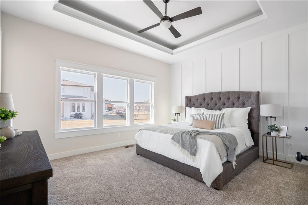 Be wowed by the upgrades & high-quality construction in the stunning Estancia II by DCB Homes on fantastic lot backing to HOA greenspace (back faces east & even has a view of the lake!). This Reverse 1.5 features an open airy & expansive main level w/ large Great Room featuring floor to ceiling split stone at the fireplace, built in cabinets with floating shelves and an 8x12 double slider leading from the Great Room to the back patio. Open dining area with built in cabinet with quartz top & well-appointed cook's kitchen with quartz countertops, gas range, built in appliances. One of the favorite features of this home is the butler's pantry with prep sink off the kitchen and huge pantry. Spacious Master Suite w/ shower, freestanding tub, XL closet & 2nd bedroom & bath on the main level. Finished walk-out lower level w/ large Rec Room, wet bar and large Rec Room for lots of entertaining, 3 secondary bedrooms, full bath & tons of storage. **PHOTOS OF FINISHED HOME ARE OF A SIMILAR HOME** Lakeview Ridge is a new build community just west of Lake Olathe with great homes started and fantastic lots available. You can get to the neighborhood off of Dennis & Houston with easy access from K7 or coming from Lakeshore. Our development is right next to Lake Olathe and neighborhood feeds into Clearwater Creek Elementary, Oregon Trail Middle School and Olathe West High School. Estimated completion in March 2026. NOW IS THE PERFECT TIME TO COME IN AND FINALIZE SELECTIONS!!