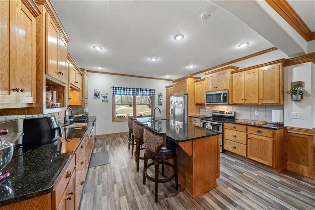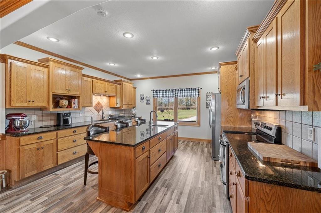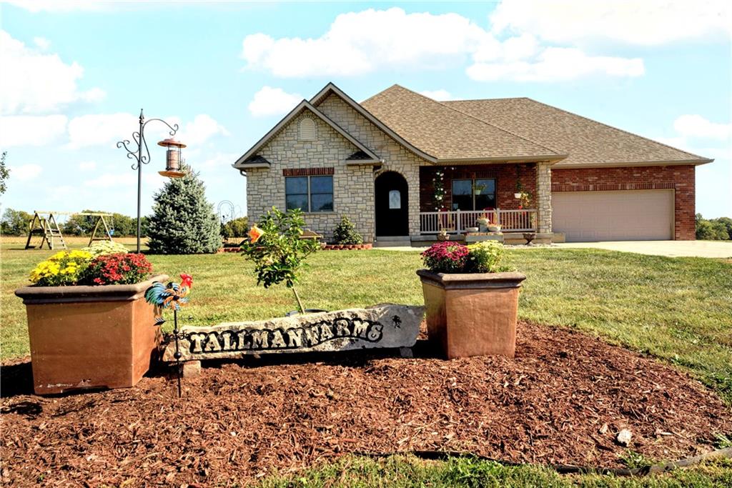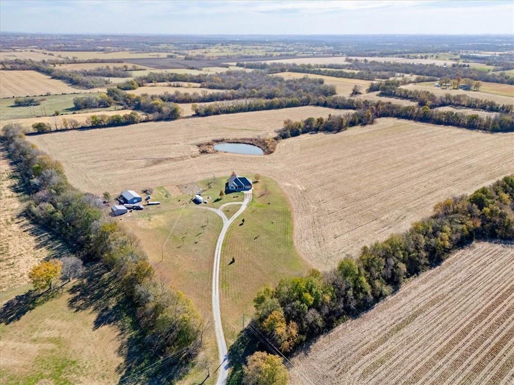 Your own private sanctuary on 20 Acres M/L—just off blacktop, surrounded by nature and peaceful privacy. The only neighbors you’ll see are deer, turkey, squirrels, and an abundance of wildlife. This thoughtfully designed open floor plan showcases excellent construction throughout, featuring a chef’s kitchen with top-of-the-line cabinetry, a massive center island, and generous workspace. Three bedrooms total, including a flexible room ideal for an office, hobby space, or guest suite. Enjoy true main-level living with wide, handicap-accessible doorways and comfort in every detail. 50x 30 and 25x26 Outbuildings ready for storage, hobby or raising livestock. Farm life, Refined. Need more land? An additional 30 acres are available (for a total of 50 acres) for an increased purchase price.