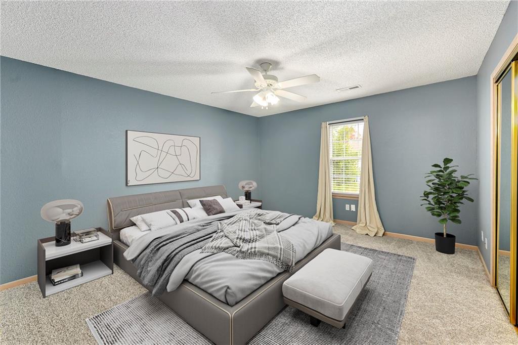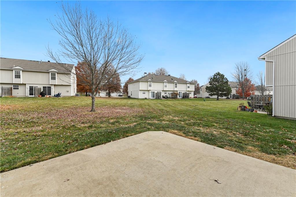 Highly sought after end unit that backs to greenspace with trees. MOVE IN READY!!! Cleaned from top to bottom (even power washed the patio) with a splash of color (various ocean/sky blues and relaxing grays). NEW - kitchen SS appliances (stove, microwave, & dishwasher), carpet throughout the whole unit, kitchen faucet, primary suite - light fixtures, sink faucet, shower & bathtub faucets, toilet flange ring & wax ring), water heater (next week), window & storm door screens (4), & 2 sets of blinds. Seller replaced A/C unit the summer of 2023 to a Trane XR (upgraded). Other updates include - kitchen ceiling light fixture, taller toilet in primary bath, & new fan in living room. BIG BONUS - Garage features an attic pull-down with stairs for additional storage. Front faces West (sun to clear driveway). The patio is on the East (shade for the evening). Washer & dryer stay with the unit. Amenities include lawn care, snow removal, community pool, exterior maintenance. Neighborhood is owner occupied only, no rentals allowed. Home is close to shopping and restaurants, with quick highway access, and located within award winning Lee's Summit School District (New middle school - 1 mile to the East). Don’t miss out on this fantastic opportunity to own a move-in ready home with thoughtful updates in a prime location. COME SEE IT TODAY!