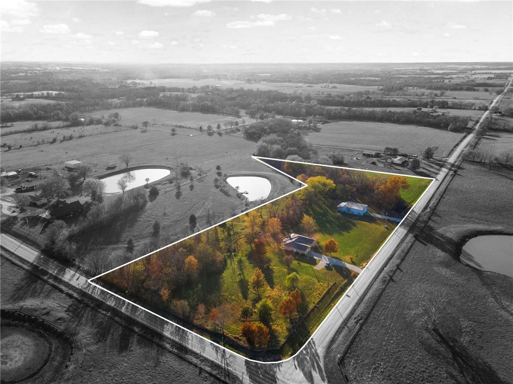 Experience country living at its finest on 8.4 beautifully landscaped acres right on blacktop roads, where tranquility meets contemporary upgrades in this inviting Odessa retreat. Step inside to find a spacious three-bedroom, two-bath ranch layout designed for everyday comfort. You’re greeted by a warm, inviting kitchen made for holiday gatherings. With its open layout, large island, bar seating, and custom pantry shelves, there’s space to cook, connect, and keep family close. The kitchen flows seamlessly into the living room with its beautiful brick wood-burning fireplace—perfect for entertaining. Need extra seating? Move from the kitchen bar to the adjoining dining room. This open-concept design ensures you’re always part of the fun. Off the living area, the master bedroom features a private porch to enjoy evening sunsets, while the updated master bath boasts a stunning custom shower with dual shower heads, his-and-her sinks, and separate closets. Too hot or cold for the porch? Relax in the sunroom and soak in serene views of manicured grounds with apple and pear trees. Just off the sunroom, a large newer deck offers plenty of space for family. Evenings are cozy by the fireplace, and modern updates—new can lights, generator hookup, surge protector, 4 year old roof, and new furnace blower motor—add both efficiency and peace of mind. This all-electric home stays energy efficient year-round. A deep two-car garage and huge unfinished basement with elevated ceilings offer abundant storage or expansion potential. Outside, a 42x50 barn with concrete floors, covered awning, and its own electric panel provides flexible space for livestock, hobbies, and a workshop. If that’s not enough, a three-sided pole barn adds even more storage. This property blends country charm with modern comfort— with a perfect blend of pasture and wood. This is an exceptional choice for hobby farmers, outdoor enthusiasts, or anyone seeking a peaceful, versatile retreat close to town and highways.