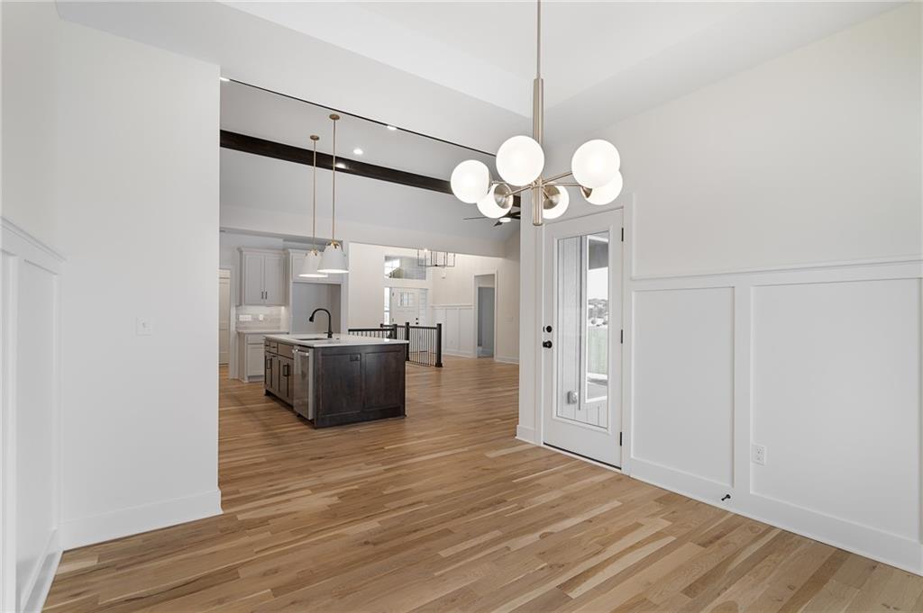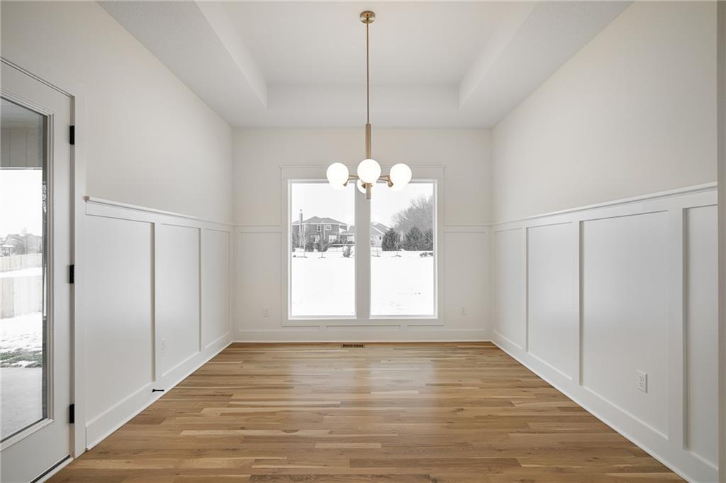 Come explore the award-winning Shea II Ranch by DCB Homes! This 4-bedroom, 3-bath beauty features a striking new front porch elevation and an inviting open layout designed for modern living. The main level impresses with a vaulted ceiling spanning the Great Room and Kitchen, creating a bright, airy feel. The kitchen offers abundant cabinetry, a large island, built-in appliances with a gas range, and a walk-in pantry. A spacious dining area is a buyer favorite that opens to the back deck—perfect for entertaining. The primary suite features a walk-in shower, freestanding tub, double vanities, and a generous walk-in closet. Two additional bedrooms and a full hall bath are conveniently located on the opposite side of the main level, along with a laundry attached to the Primary and mudroom. The finished Lower Level includes a large rec room with bar, fourth bedroom, third full bath, and two large storage areas. A 3-car garage completes this fantastic plan. **This home is at foundation phase. Photos are of a similar home. Taxes are estimated.** Lakeview Ridge is a new build community just west of Lake Olathe with great homes started and fantastic lots available. POOL coming in 2027. You can get to the neighborhood off of Dennis & Houston with easy access from K7 or coming from Lakeshore. Our Sales Office is located 14271 Houston. Our development is right next to Lake Olathe and neighborhood feeds into Clearwater Creek Elementary, Oregon Trail Middle School and Olathe West High School.