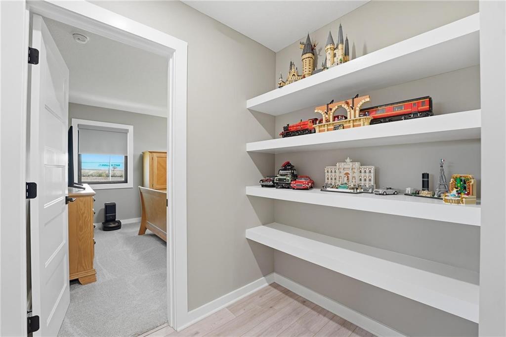 Exquisite Two-Story Home with Water Views in Warrensburg Discover a rare blend of modern luxury and natural beauty in this stunning two-story home overlooking a peaceful pond/lake where blue herons and even bald eagles are known to visit. With its striking stucco front and hardie board-style siding, this home delivers impressive curb appeal from the moment you arrive. It is so larger than it looks! Step inside and be greeted by soaring ceilings, abundant natural light, and expansive custom windows that showcase the serene lake views. The grand staircase makes a statement of its own—graceful, open, and truly fit for royalty. The heart of the home is the chef’s kitchen, designed for those who love to cook and entertain. Featuring quartz countertops, painted walnut cabinetry, a large center island, and a butler’s pantry, this kitchen offers both elegance and functionality. The open-concept living area flows seamlessly, highlighted by a modern linear electric fireplace and stylish white walls accented with black hardware for that clean, contemporary look. Upstairs, enjoy spacious bedrooms with large closets and an enormous walk-in primary closet that feels like a boutique. The large laundry room and built-in drop zone/mudroom bench add everyday convenience and thoughtful design touches. Step outdoors to a flat, black-fenced backyard and enjoy evenings under the open sky, or sip your morning coffee from the covered front porch as you watch the sun shimmer across the lake. The home also features custom-fitted smart blinds and in-ground lawn irrigation for effortless maintenance. This home is not your typical cookie-cutter design—it’s a statement of taste and individuality, where every detail has been carefully curated for comfort and style.