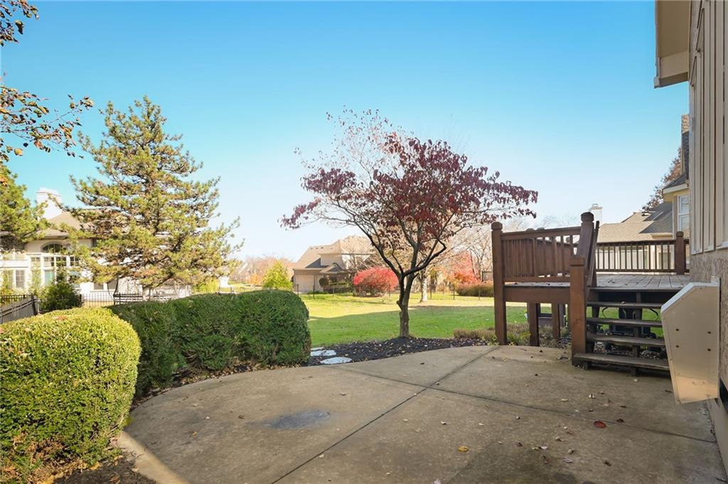 Looking lovely in Leawood is this 1.5 story home with a phenominal floor plan that is laid out with large rooms and spaces. Many big windows let in lots of light and have plantation shutters on the main level! The kitchen has double ovens, warming drawer, Viking gas range with downdraft, walk in pantry and is open to the hearth room with a see through fireplace. The main level office features a wall of custom cabinetry and new carpet. The primary on the main level has an updated tile shower and freshly painted cabinets. Upstairs the bedrooms are generously sized and paired with a large loft room for extra space! The lower level is open with a kitchenette, full size refrigerator and bar seating. A 5th non-conforming bedroom, full bathroom and big workout room bring every bit of functionality to this home. All located on a lot with a fully fenced backyard, newer driveway and sidewalk, just down the street from the neighborhood pool, in Iron Horse Estates surrounding the public golf course and driving range. The location offers so many nearby amenities, and award winning schools!