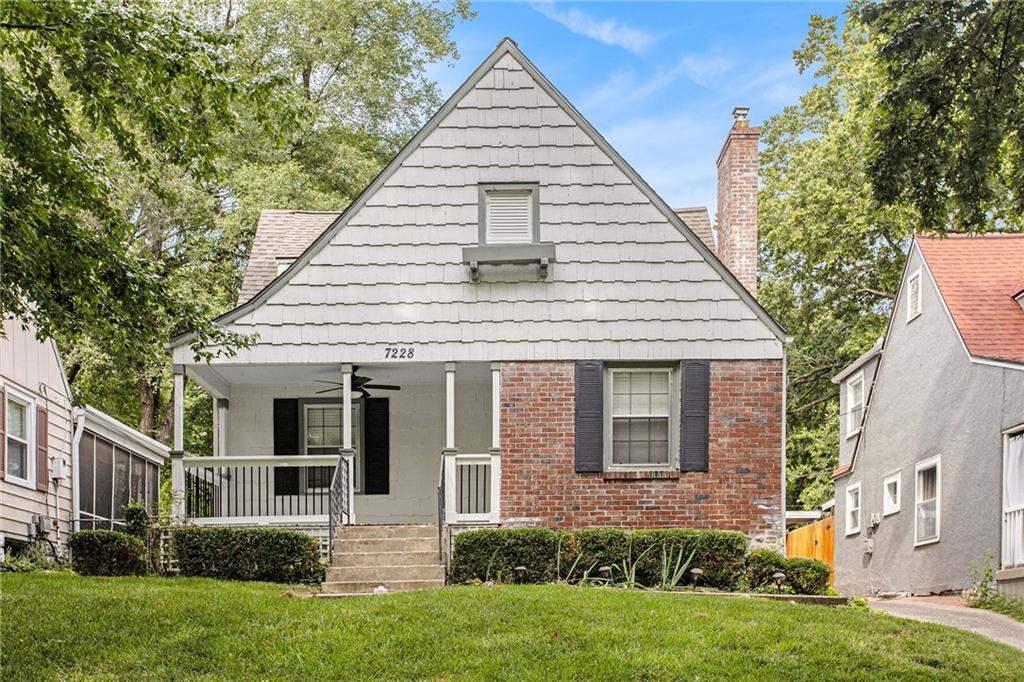 Welcome to 7228 Walnut Street — a lovingly maintained Waldo charmer just steps from some of Kansas City’s most beloved amenities. This home sits in a prime location near the Waldo and Brookside shopping districts, with easy access to local coffee shops, boutiques, restaurants, and the Trolley Trail, perfect for morning walks, runs, or bike rides. Fresh exterior paint, newer roof, classic brick accents, and shutters create eye-catching curb appeal. A covered front porch with a ceiling fan invites you to relax outdoors, even on warm summer days. Step inside to find recently refinished hardwood floors, a cozy fireplace, and a spacious dining area filled with charm and natural light. The kitchen is beautifully updated with granite countertops, stainless steel appliances, gas range, hardwood floors, custom tile backsplash, and stained wood cabinetry. Just off the kitchen, the large enclosed patio—updated with new luxury vinyl flooring—offers the perfect transition to the outdoors. The tree-covered backyard is ideal for entertaining, featuring an additional paver patio and plenty of shade. A one-car garage adds convenience and extra storage. The main level includes a nicely sized bedroom with an attached half bath, giving you flexibility for a guest suite or main-floor living. Upstairs, you’ll find two charming bedrooms with ceiling fans, plus a full bathroom featuring penny-round tile flooring, white subway-tile shower surround, soaking tub, and granite-top vanity. One upstairs bedroom also includes a huge walk-in closet—a rare find in this area. Choose the first floor or the second floor as your primary suite—both options work beautifully. The seller has lovingly cared for this home for years, and it shows in every detail. Don’t miss your chance to own a classic Waldo home in a highly walkable, highly desirable location!