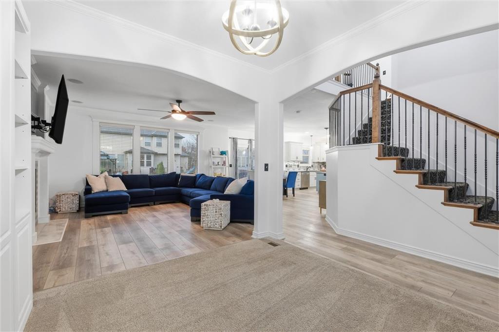 Prepare to all in love with this stunning 5 bedroom, 3.5 bath, two story home in Eagles Ridge! This home has everything you have been looking for and more! The main level offers an oversized living room with fireplace and an adjoining formal dining room or flex space great for a home office or playroom. The living room opens nicely to a beautiful kitchen and eat in dining area great for entertaining. The kitchen features a large kitchen island, granite countertops, expansive walk-in pantry, under cabinet accent lighting, stainless steel appliances and upgraded USB outlets. Upstairs you will find the perfect primary suite with a vaulted ceiling, ensuite with double vanity, jetted tub and massive walk-in closet! There are three additional bedrooms all with walk-in closets and the convenience of second floor laundry room! The showstopper? An incredible finished basement that truly has it all! Enjoy luxury vinyl plank flooring, a cozy family room with electric fireplace, beautiful kitchenette with quartz countertops and a full size fridge, a bonus eat in area AND play space! Don’t forget about the fifth bedroom and full bathroom! You will also enjoy a three car garage with epoxied floors, a fully fenced backyard with play set and concrete patio. The exterior has also been recently painted. Don’t miss your chance at this spectacular home!