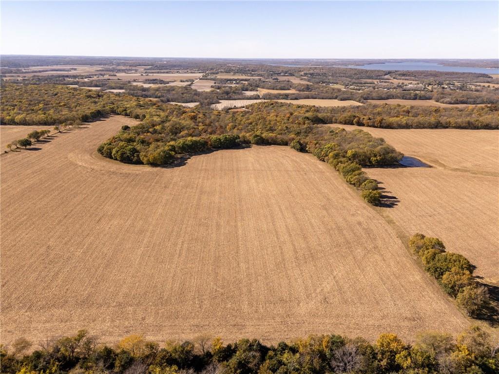 This 395.5-acre property offers rare contiguous acreage on all paved roads in Wakarusa Township, just a mile and a half from the K-10 bypass and only minutes from Lawrence, making it an excellent location for new home development. The property is made up of four individually surveyed tracts: 95.5 acres m/l on N 1100 Road, 76.2 acres m/l on N 1100 Road, 81.5 acres m/l on E 1200 Road, and 142.3 acres m/l on E 1200 Road. It sits in a prime area for outdoor recreation, with abundant wildlife (especially deer and turkey) and strong potential for future hunting leases. Five spring-fed ponds, mature hardwood timber, and a high bluff with sweeping views to the north and west overlooking Clinton Lake make this a standout setting for anyone who values both privacy and natural beauty. The land also offers approximately 160 acres of tillable ground, approximately 40 acres of pasture, and 200 acres of timber, along with fencing, cross-fencing, and two RWD #5 water meters to support a variety of agricultural uses. With its mix of productive ground, rich habitat, and exceptional access, this property blends recreation, versatility, and convenience in one close-to-town location