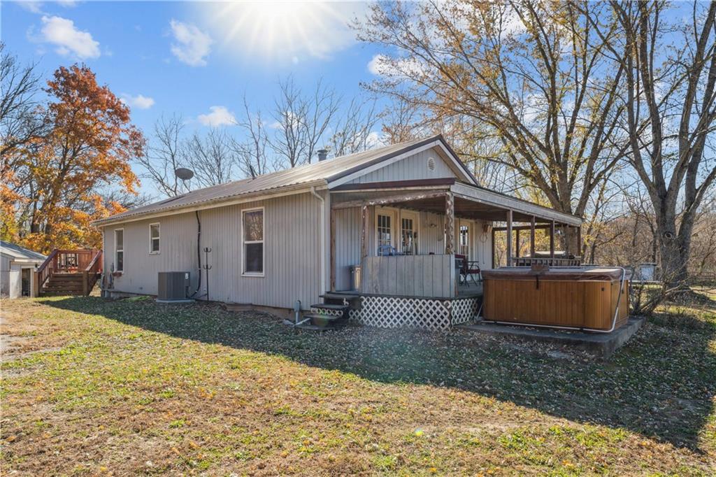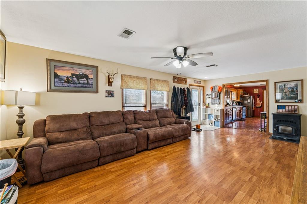 This inviting property offers comfort, space, and a peaceful country setting just one mile from town. The home features an open floor plan, pellet wood heat, and electric A/C for efficient year-round living. With 3 full bathrooms and 4 bedrooms, one is a non-conforming bedroom in the walkout basement, there is plenty of room for family, guests, or flexible use. Outdoor living shines here, with a 900-square-foot wraparound deck on two sides and a covered deck on the north side, creating several great spots to relax and enjoy the view. The property is horse-ready with a fenced paddock, and mature trees add privacy and charm throughout the acreage. Inside, the primary suite features a spacious custom shower with a rain shower head. The main level includes two full baths for convenience. The walkout basement features a large family room with a pellet stove, ideal for cozy evenings or gatherings. A 22x40 detached three-car garage and shop with electric provides excellent storage and workspace options. This property offers a balance of country living and quick access to town. It is ready for its next owner to make it their own.