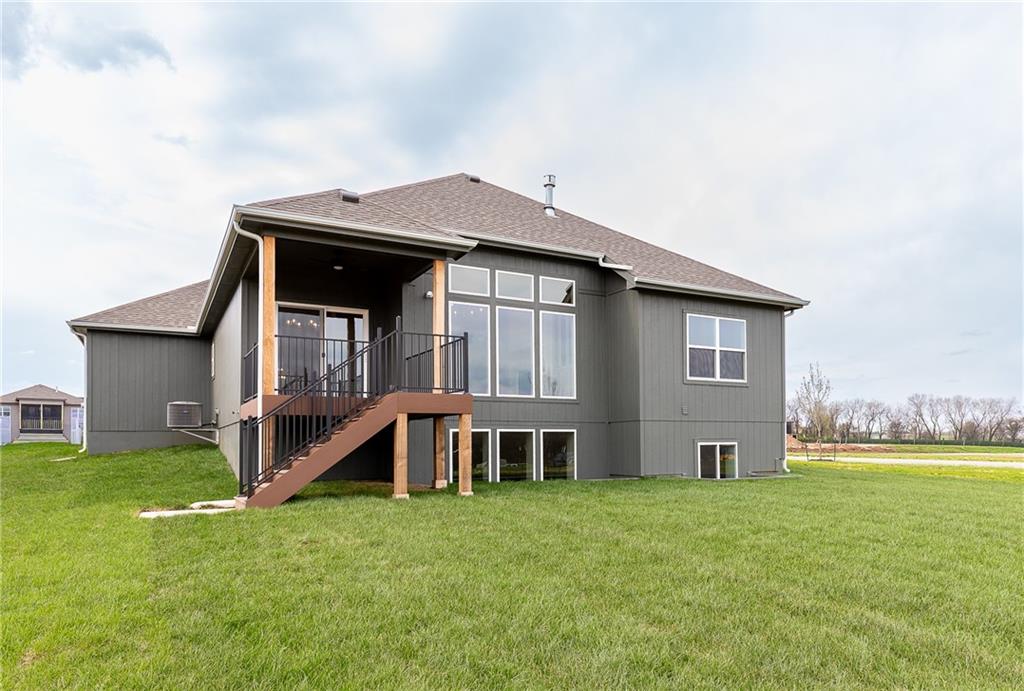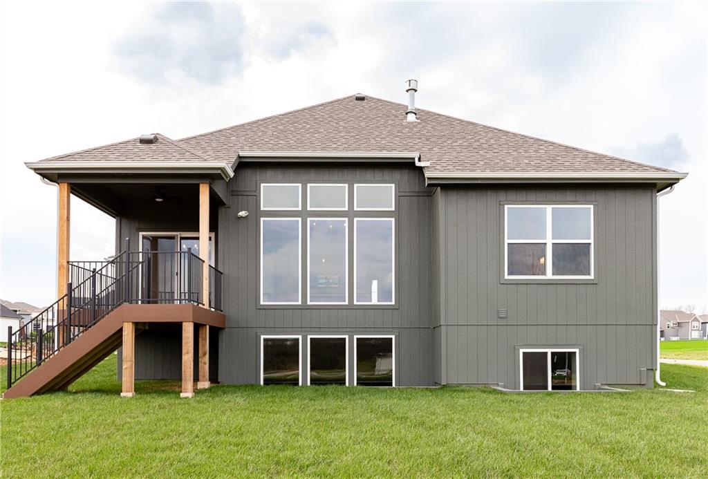 MOVE IN READY! Welcome to this fantastic Reverse 1.5-Story Sonoma Plan by SAB Homes in Southern Meadows! This home sits on lot 66 in Overland Park’s newest premier community. This beautiful 4-bedroom, 3-bath reverse 1.5-story offers the perfect blend of designer style, functional layout, and modern comfort. Step inside to an open, airy main level featuring tall ceilings, a hidden staircase, and large windows that flood the living space with natural light. The chef’s kitchen boasts abundant cabinetry, a spacious island overlooking the main living area, and high-end finishes throughout. A convenient mudroom sits just off the 3 car garage entry. Relax outdoors on the covered deck with ideal evening shade, overlooking the large corner lot. The finished daylight lower level provides even more living space, including two additional bedrooms, a full bath, generous recreation area, and a fantastic walk-up bar perfect for entertaining. This stunning home brings together thoughtful design, added trim detail, premium craftsmanship, and a highly sought-after location in Southern Meadows. A must-see!