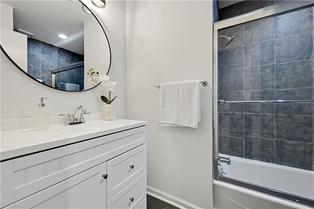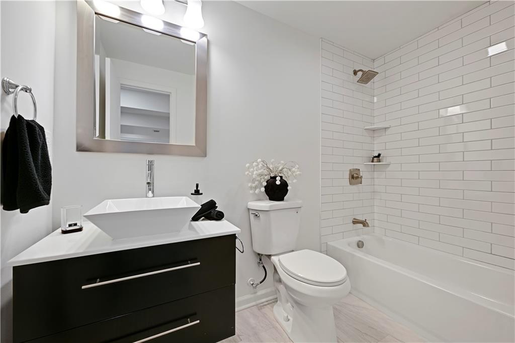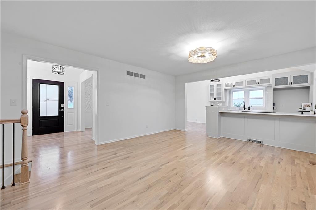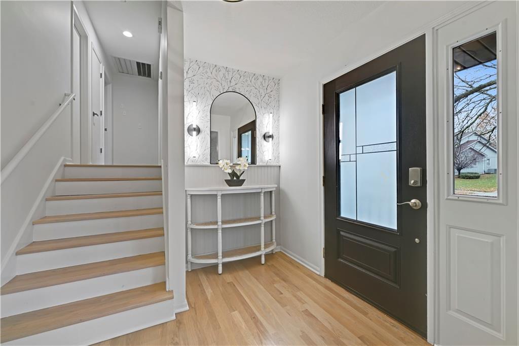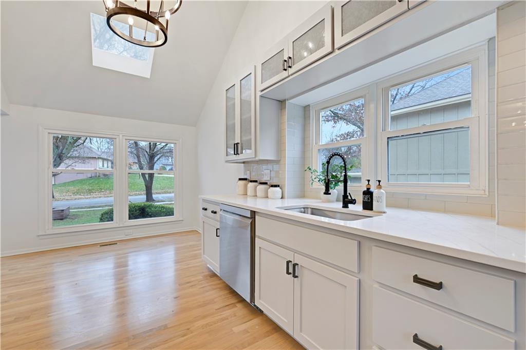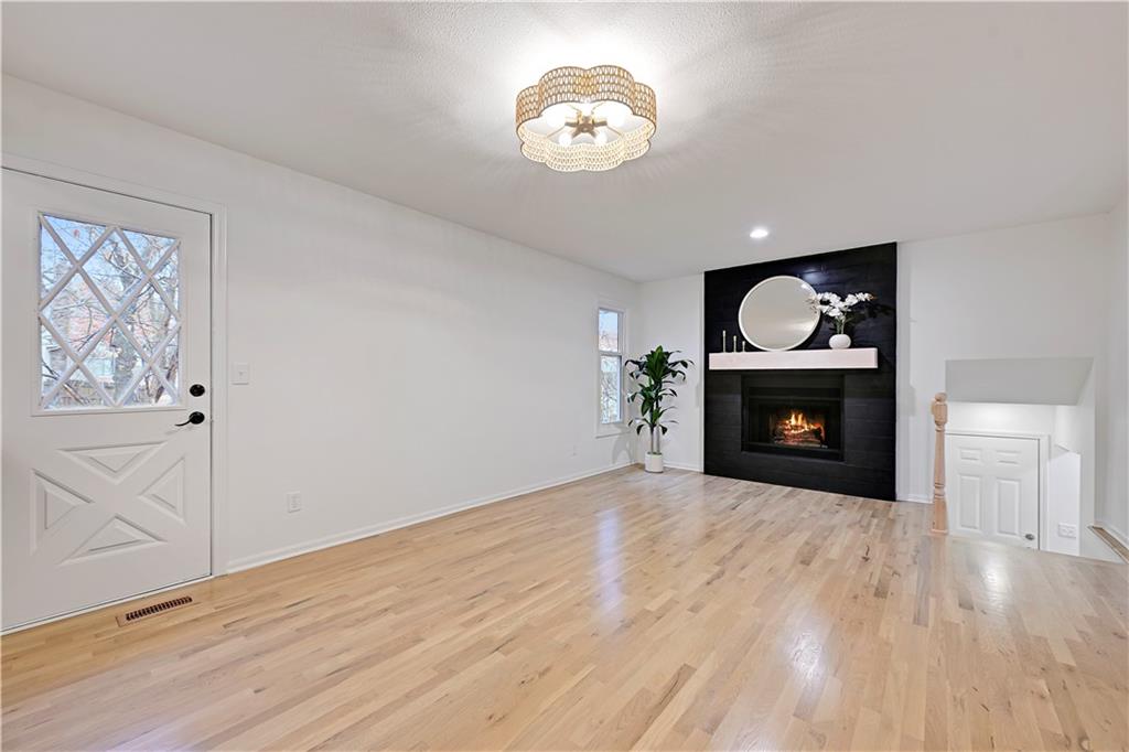 STUNNING TOP-TO-BOTTOM REMODEL! BRAND NEW ROOF AND HOT WATER HEATER! This charming home delivers an open-concept layout loaded with style and smart updates. The living room features a sleek black brick fireplace and beautiful hardwood floors that run throughout the main level and staircase, all flowing seamlessly into the brand-new kitchen. The kitchen is completely redesigned with new cabinetry, quartz countertops, subway tile, an electric range with a hidden pop-up/down vent fan, a breakfast bar, a window over the sink, and a cathedral ceiling with skylight for incredible natural light. There’s also a breakfast area plus an adjoining space that can function as a dining room, office, or playroom—whatever fits your lifestyle. A door just off the living room opens to a huge deck overlooking mature trees for true privacy. Head upstairs to find three bedrooms, including a spacious primary suite with its own fully renovated bath featuring gorgeous tilework, upgraded shower heads, and a new vanity. The second full bath is also freshly updated. The lower level offers a tiled family room, a 4th bedroom, and a stylish laundry room. Exterior vinyl siding and newer windows keeps maintenance simple. Fantastic location—close to highways, neighborhood parks, schools and shopping! Shows even better in person! Buyer backed out no fault of seller!