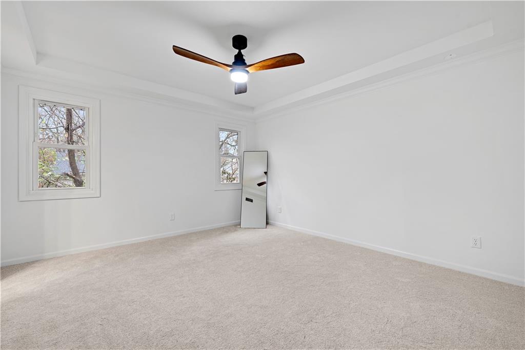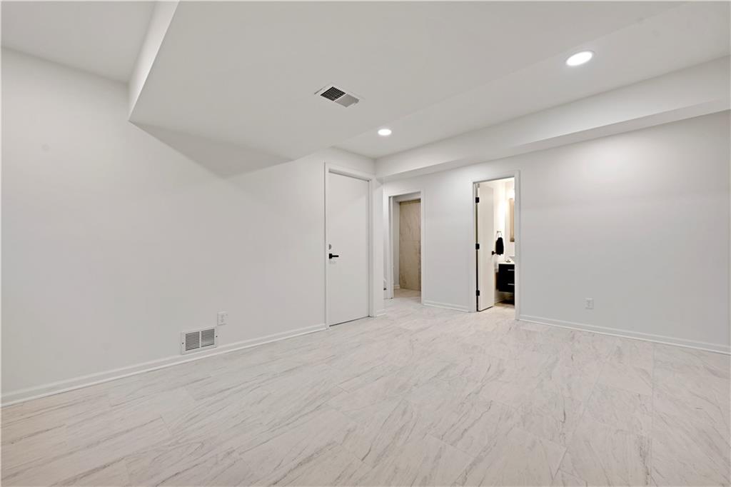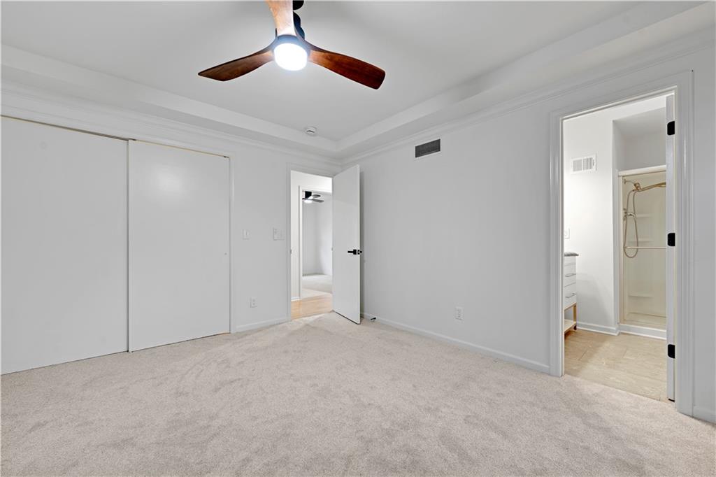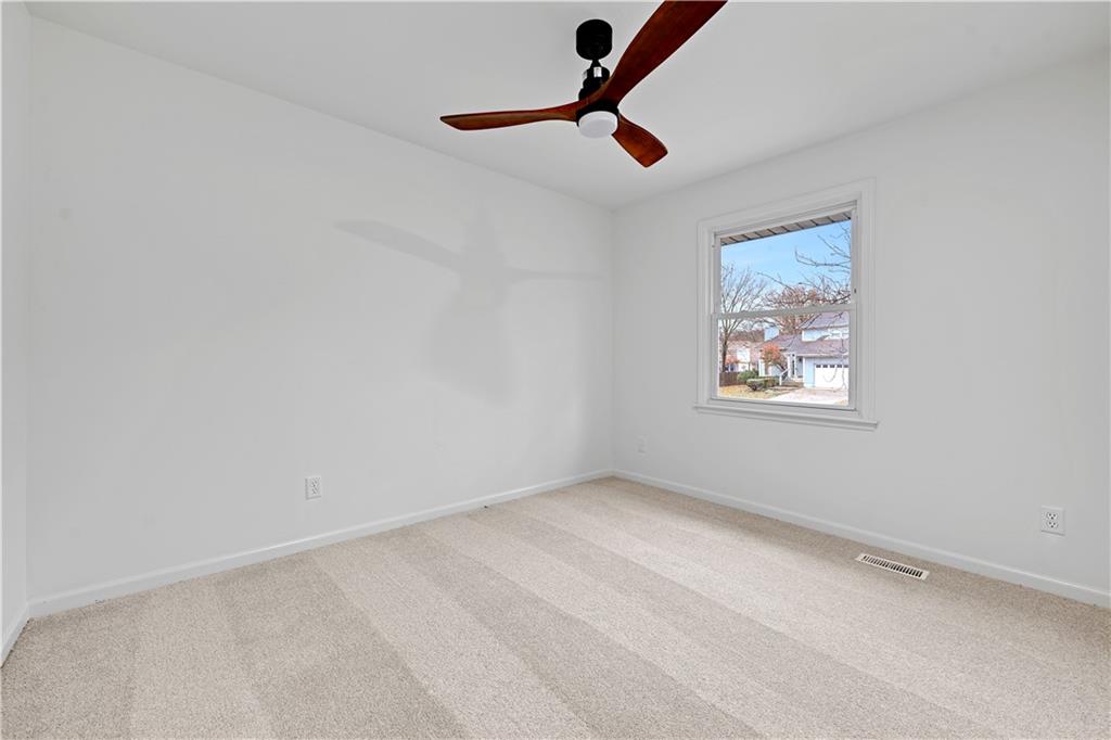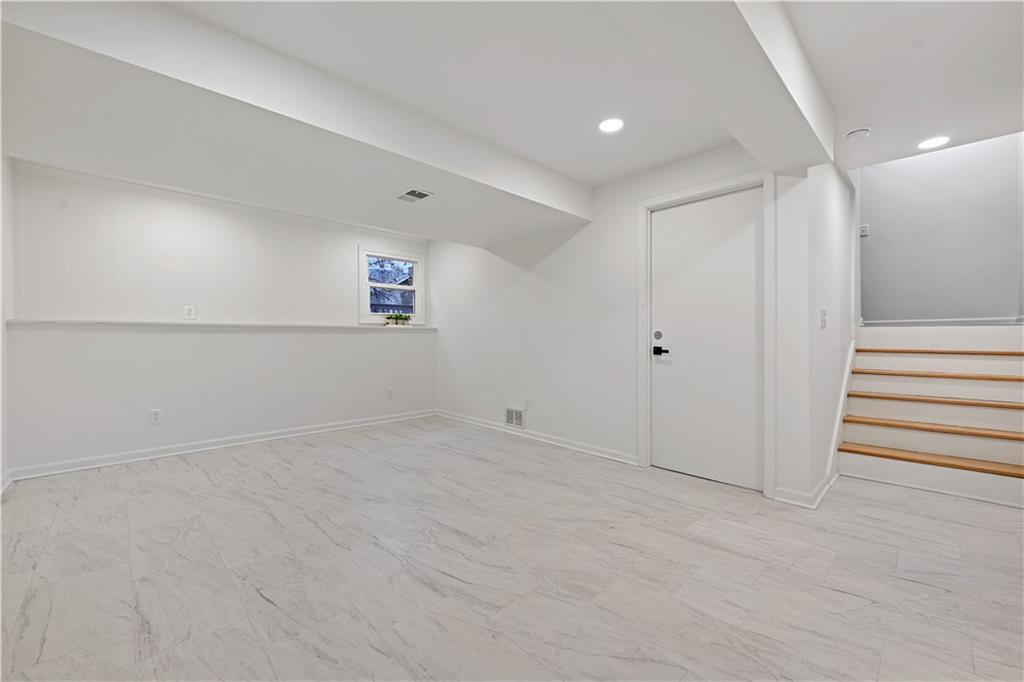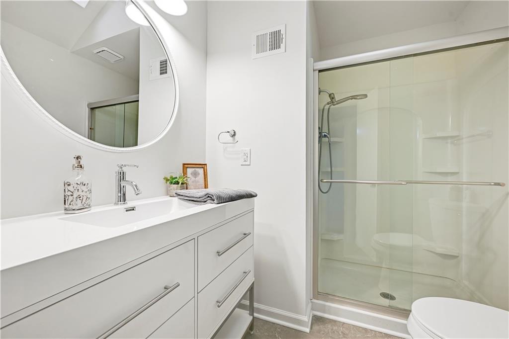 STUNNING TOP-TO-BOTTOM REMODEL! BRAND NEW ROOF AND HOT WATER HEATER! This charming home delivers an open-concept layout loaded with style and smart updates. The living room features a sleek black brick fireplace and beautiful hardwood floors that run throughout the main level and staircase, all flowing seamlessly into the brand-new kitchen. The kitchen is completely redesigned with new cabinetry, quartz countertops, subway tile, an electric range with a hidden pop-up/down vent fan, a breakfast bar, a window over the sink, and a cathedral ceiling with skylight for incredible natural light. There’s also a breakfast area plus an adjoining space that can function as a dining room, office, or playroom—whatever fits your lifestyle. A door just off the living room opens to a huge deck overlooking mature trees for true privacy. Head upstairs to find three bedrooms, including a spacious primary suite with its own fully renovated bath featuring gorgeous tilework, upgraded shower heads, and a new vanity. The second full bath is also freshly updated. The lower level offers a tiled family room, a 4th bedroom, and a stylish laundry room. Exterior vinyl siding and newer windows keeps maintenance simple. Fantastic location—close to highways, neighborhood parks, schools and shopping! Shows even better in person! Buyer backed out no fault of seller!