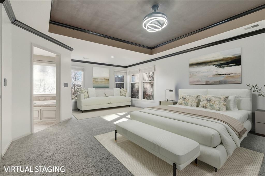 Enjoy this beautifully well-maintained & updated home in a sought-after wilderness neighborhood. Decadent designer paint, open concept kitchen, ample lounging areas, glossy hardwood floors, and custom tile work. Only 2-year-old HVAC. 4.5 yrs old Roof. Extended deck with great landscape/deck lights! Great flow for entertaining on the main level and in the fully finished basement, complete with a wet bar, office/spare bedroom, and a huge custom bathroom with travertine tiles. Spacious second level with laundry, Jack and Jill baths, three bedrooms, and the oversized master with sitting area, huge walk-in shower, and soaker tub for two! Excellent BV school district. 3rd Tandem garage for an extra vehicle. Don't miss this one-of-a-kind home with features galore!