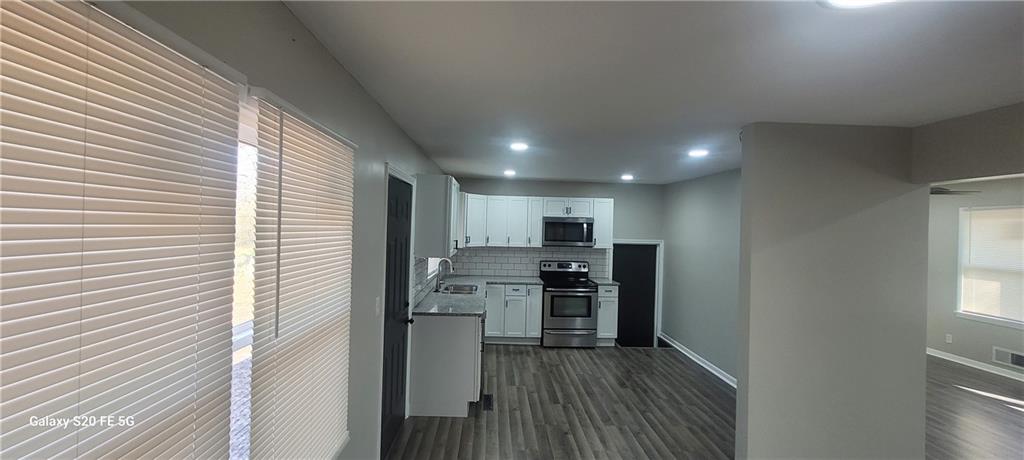 Remodeled to perfection. This home is centrally located off several major highways, public transportation and popular attractions. Come sit on the cozy deck and enjoy the country style feeling on this elegant home. The front room area is very inviting and offers an open and spacious floor plan. This beauty also offers new roof, gutters, light fixtures, windows, reset lighting in the front room area as well as kitchen area. The kitchen has been totally renovated with granite counter tops, stainless steel appliances:(Refrigerator, Stove, microwave and dishwasher). Fresh interior/exterior paint throughout, remodeled bathroom, laminate flooring throughout the home, new carpet /ceiling fans in all bedrooms, cordless blinds and rebuilt deck on the front porch.