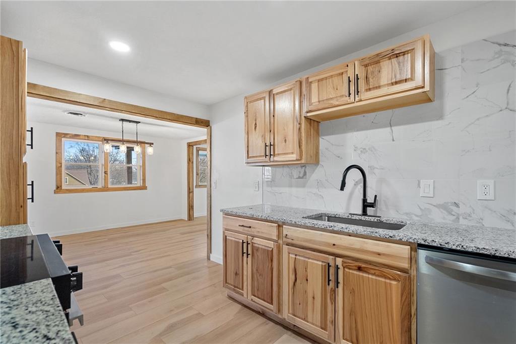 Charming, fully updated 2-bedroom, 1-bath ranch offering comfortable single-level living. Bright and inviting interior features fresh paint, updated flooring throughout, and an open, functional layout. The spacious living room flows into the dining area, perfect for everyday living or entertaining. Updated kitchen boasts modern cabinetry, ample counter space, and stainless appliances. Two well-sized bedrooms share a refreshed full bath. Enjoy outdoor space with a large yard and mature trees, plus a detached garage providing extra storage or workshop potential. Conveniently located with easy access to shopping, dining, and major routes. Move-in ready and easy to show!