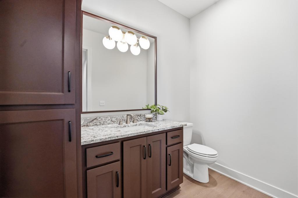 The stunning Emerson reverse 1.5 story plan by French Homes in Cedar Creek's newest community - The Estates of Canyon Oaks. Located in the award-winning Olathe School District, this reverse 1.5 story home has 4 beds, 3.5 baths, 3 car garage and sits on a walkout lot on a cul-de-sac. Step inside the double wide doors into the entry which leads you to the spacious family room with wood floors and fireplace with built-in cabinet surrounds. The gourmet kitchen features an island, custom cabinets with hood, cooktop, built in oven/micro and a generous sized prep pantry with storage, sink and beverage cooler. The eat-in dining space has a built-out space perfect for a hutch and also connects to the covered deck - perfect for morning coffee. The private main level primary suite offers a spa-like bathroom that includes double vanities, free-standing tub, shower with bench and a huge walk-in closet that conveniently connects to your laundry room. Main level also has a second bedroom, full bath and a mudroom with bench off the garage. The walkout lower level includes a large rec room with second fireplace, wet bar with island and two additional bedrooms, 3rd full bath and a half bath perfect for guests. Plenty of unfinished storage space left too. Enjoy Cedar Creek's amazing amenity package that includes 3 neighborhood pools, community clubhouse with exercise room and indoor basketball court, lit pickleball and tennis courts, access to 65 acre lake, monthly neighborhood events, walking trails and more.