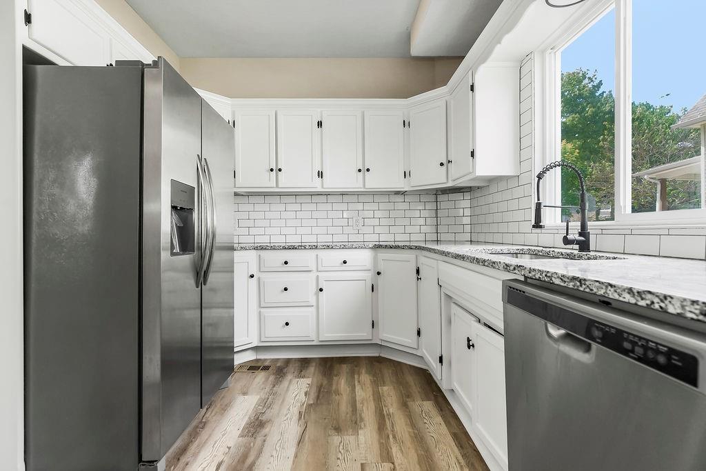 Charming 2 story home! Relax on the covered porch- an ideal spot to sip your favorite drink. The main level features vinyl plank flooring and offers spacious living and dining areas. The kitchen boasts granite countertops, crisp white cabinetry, stainless steel appliances and a pantry. BONUS: All appliances are included! A convenient half bath is located just off the kitchen. Upstairs, you'll find 3 generously sized bedrooms and a full bathroom. The home includes a full basement with interior access. Close to highways, shopping and dining. *PRICED WELL BELOW COUNTY APPRAISAL!
