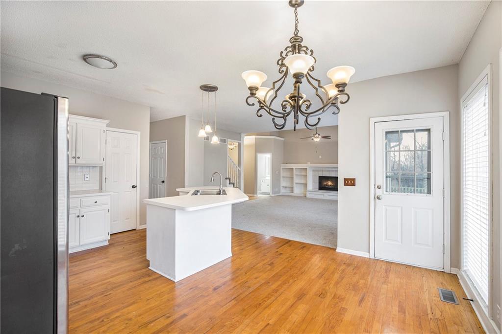 Welcome to this charming 4-bedroom, 2.5-bathroom home in the desirable Olathe! This property offers charm not often found in newer homes. The main level seamlessly connects the living room with a built-in surrounding mantle fireplace to the kitchen, which boasts wood floors, stainless steel appliances, and the dining room. The finished basement is designed for entertainment, including a bar area that makes it perfect to serve as a home theater or game room. All bedrooms are located on the second floor. The primary bedroom includes a spacious ensuite with dual sinks, garden tub and walk-in shower. Enjoy the outdoors on the homey front porch overlooking the neighborhood. The location is excellent, with easy access to I-35, KU's Olathe Medical Center, and Garmin. You'll also be in close proximity to numerous restaurants, shopping, services, and public schools. Schedule your showings today!