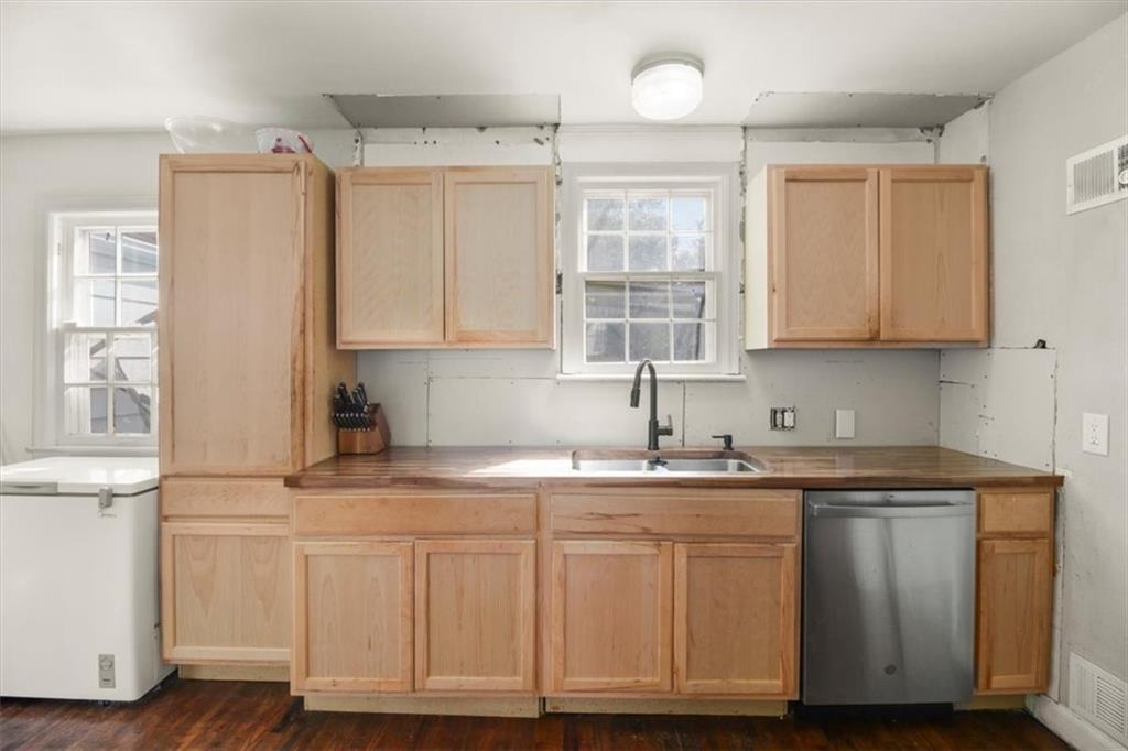 Charming Two-Story in Pleasant Hill that is much bigger than it looks! This spacious 3-bedroom, 1.5-bath home with a 1- car garage offers timeless character and endless potential. Built in 1940, it features gorgeous hardwood floors throughout, generously sized rooms, and tons of natural light. The brand-new kitchen cabinets bring a fresh touch, while the formal dining room with original built-ins, and the eye-catching wooden staircase in the entryway, add to the home's unique charm. The large, inviting sunroom is currently being utilized as a non conforming 4th bedroom, but has tons of potential to be your favorite room in the house with it's huge, gorgeous windows! Step outside to enjoy the double lot, on just under half an acre it's perfect for gatherings around the fire pit! With it's quiet neighborhood setting and low taxes, this home could truly shine with a little love and updating!! Original character, a great layout, and a large lot make this a rare find don't miss your chance to make it your own!