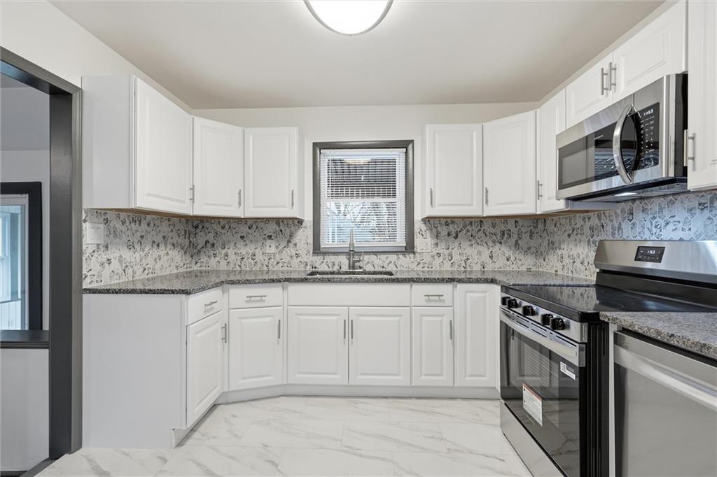 Stylishly renovated one-level living RANCH with a full, finished basement on a large, fenced lot just minutes from the stadiums! The open main level feels roomy and perfect for entertaining with an easy flow from the dining room to the fresh kitchen to the cozy living area with fireplace. Through a sliding glass door from the living room is a spacious all-seasons room where you can enjoy views of the scenic backyard year round. The beautiful kitchen is complete with granite countertops and new stainless steel appliances, and gleaming hardwood floors and a neutral color scheme throughout are the perfect canvas for you to make this space your own. Three bedrooms and a completely redone full bath complete the main level, and downstairs there is plenty more living space to enjoy in the full, finished basement. A rec area, home office, second living space and stunning second full bath offer plenty of space for remote workers, hosting games nights, a sprawling guest suite, or whatever best suits your lifestyle. The large, fenced backyard with shed is ready for backyard barbecues, gardening, playing outside and more. Welcome home!