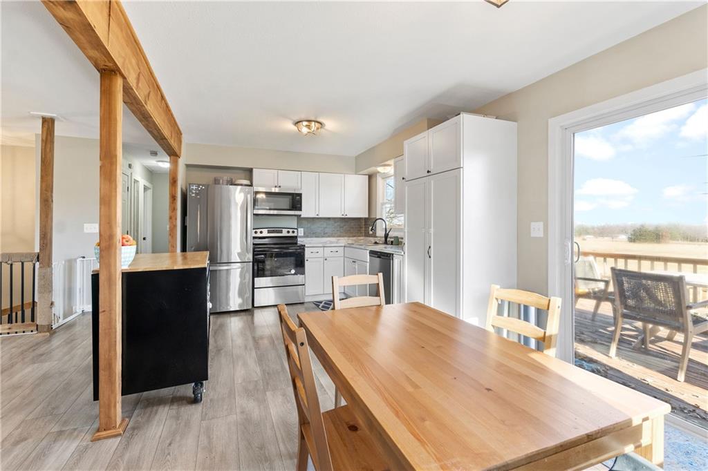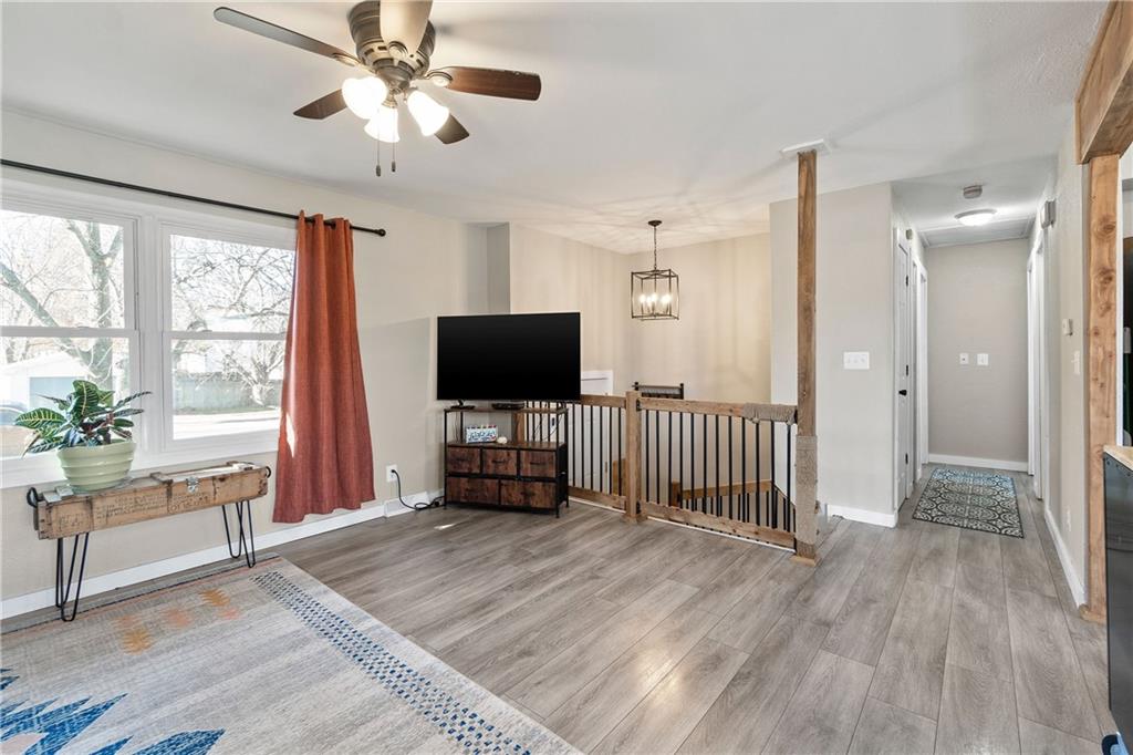 Move right into this well loved, beautifully updated split-level home featuring an open floor plan, fresh flooring, modern finishes, and warm wood accents throughout. The bright living room flows into the dining area and updated kitchen with stainless steel appliances, white cabinets, stylish backsplash, and a movable island. Enjoy three comfortable bedrooms and a fully updated bath on the main level, plus an additional living space/bedroom and half bath downstairs—perfect for guests, an office, or a playroom. Relax or entertain on the spacious deck overlooking a fully fenced yard with no neighbors behind you. Peaceful views and plenty of room to play!