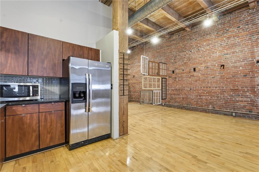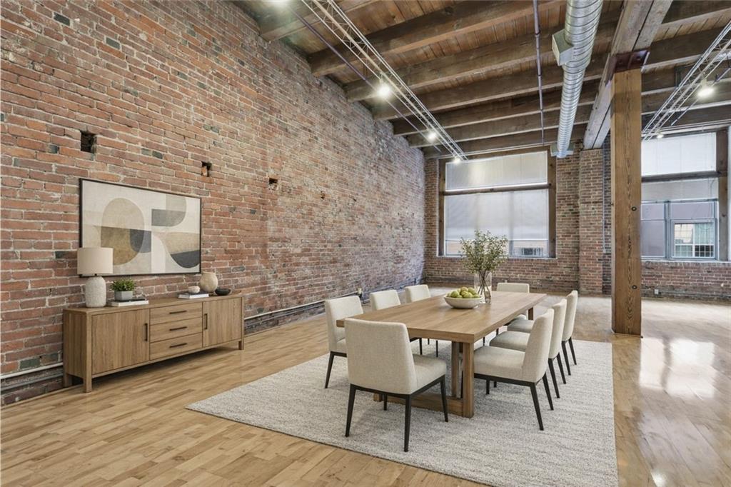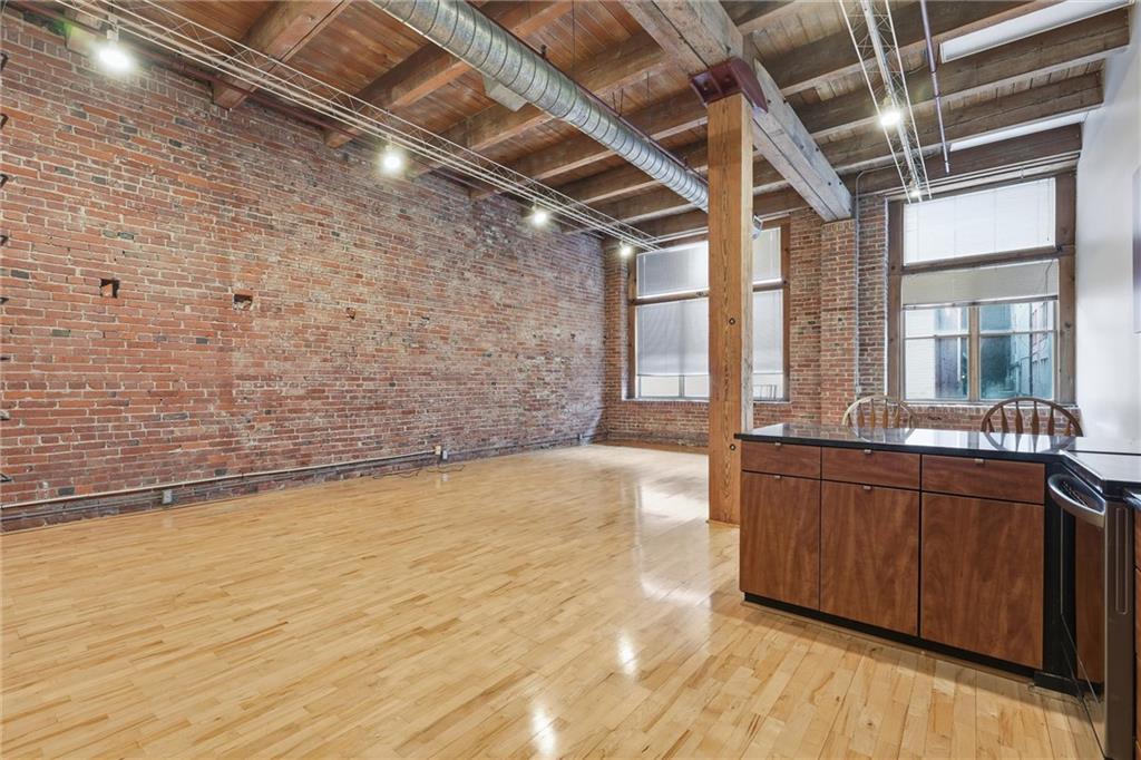 Step into this true downtown Kansas City loft offering 1,505 sq ft of open, light-filled living space. This 1-bedroom, 1-bath residence blends historic charm with modern convenience, featuring original exposed brick, soaring timber ceilings, wood floors, and oversized industrial-style windows that flood the space with natural light. The spacious layout includes a defined bedroom area with a walk-in closet, a sleek kitchen with stainless steel appliances and granite countertops, and in-unit laundry. Located in a secure building with garage parking, and just steps from the streetcar line, River Market, The Phoenix Jazz Club, and downtown’s best dining and entertainment.