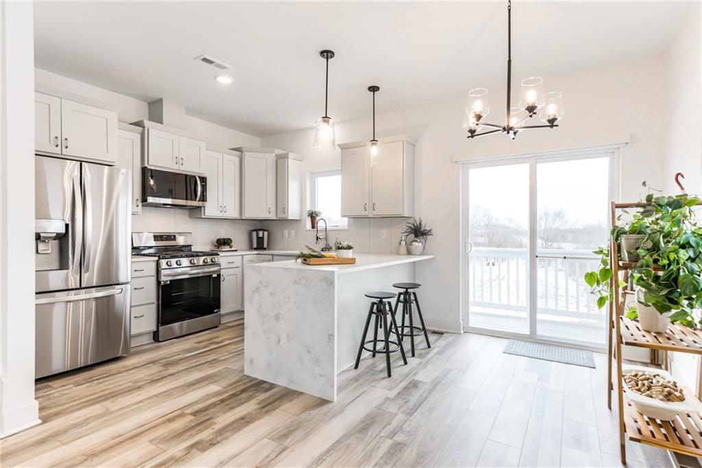 This thoughtfully designed four-bedroom, 3.5-bath townhouse offers a rare combination of quality construction, modern finishes, and a highly functional layout. * Just a year old—and kept in immaculate condition by its single owner—this home feels nearly new, with no pets and numerous upgrades already in place. * The main level features 9-foot ceilings, and an open kitchen appointed with waterfall quartz countertops, custom tile backsplash, soft-close cabinetry throughout the entire home, and smart appliances, all of which stay (including the refrigerator, washer, and dryer). * A sleek electric fireplace anchors the living area with multiple display and heat settings. * Upstairs, you’ll find a convenient laundry closet, plus a nearby dedicated office space. * All bathrooms are finished with quartz countertops and custom tile selections for a clean, timeless look. * The fully finished walkout basement adds valuable living space, while a two-car garage with an extra-deep driveway, 40-amp EV charging outlet, 90% high-efficiency furnace, and 50-gallon water heater support daily comfort and efficiency. * Construction includes two-hour firewalls between units for enhanced safety and sound separation. * Additional upgrades include custom window treatments throughout, with plantation shutters in the bedrooms. * The HOA covers lawn care, trash, recycling, and snow removal, simplifying maintenance. * Immediate possession is available. A well-built, well-maintained home with meaningful upgrades already in place—move-in ready and easy to enjoy from day one! * Easy highway access!
