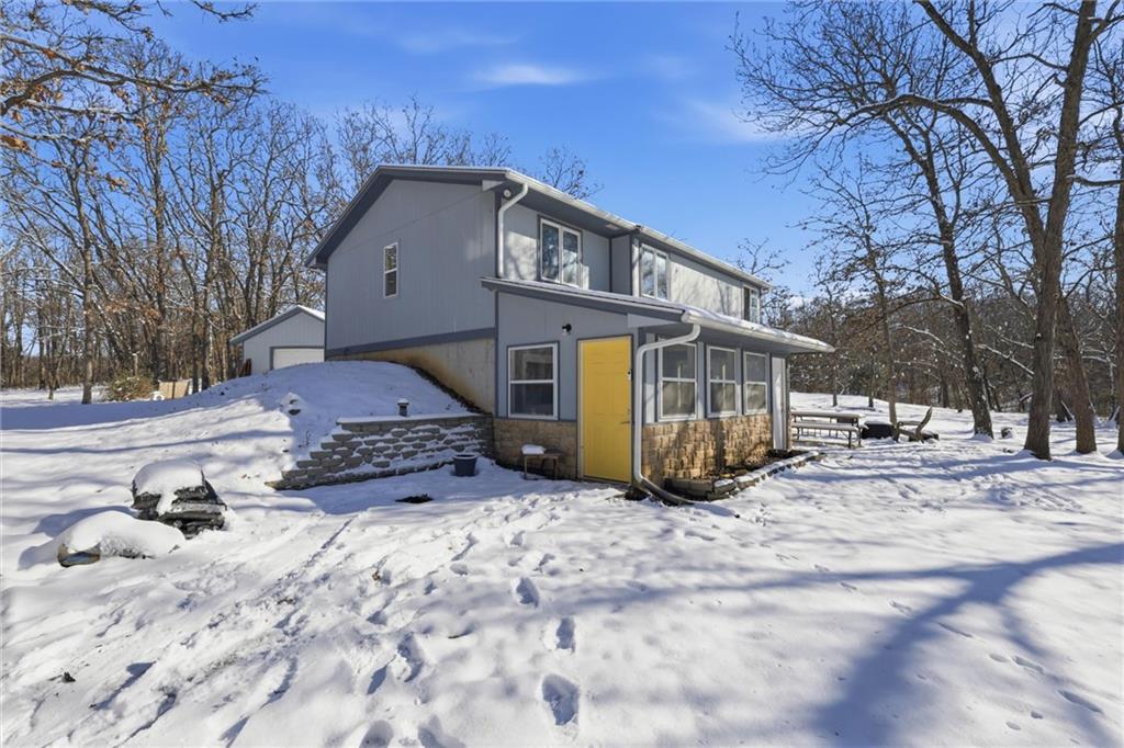 Beautifully Updated Home on 7.7 Private, Wooded Acres- *New septic system being installed* Escape to your own secluded retreat on 7.7 mostly wooded acres with a long private driveway, abundant wildlife, and peaceful country living—just 10 minutes from 50 Hwy. This updated home offers both comfort and modern style with fresh interior paint, LVP flooring throughout the main level and baths, and new light fixtures in the main living area. The kitchen has been tastefully updated with painted cabinets, subway tile backsplash, and newer appliances—including a 3-year-old oven range, dishwasher, and water heater. Both bathrooms feature new vanities, faucets, and LVP flooring for a clean, contemporary feel. Enjoy multiple outdoor spaces perfect for relaxing or entertaining: an enclosed porch, a cozy patio area, and a private deck off the primary bedroom. The property also includes a detached 1-car garage for added convenience. Major mechanicals have been well maintained—AC and furnace are approximately 8 years old. Bonus: Seller is offering a $5,000 carpet allowance! A rare opportunity to enjoy privacy, nature, and modern updates—all within easy highway access. Don’t miss this one!