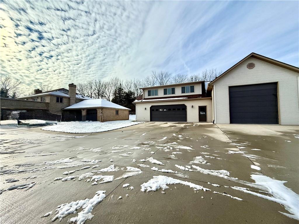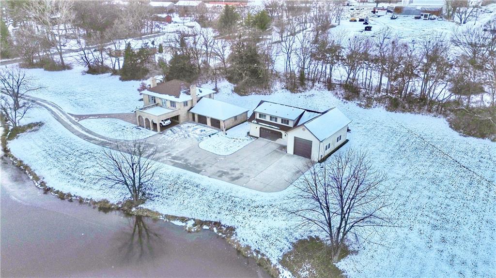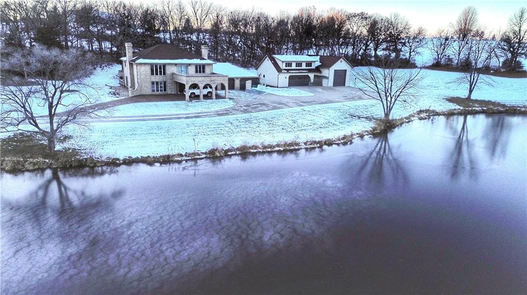 One-of-a-kind all-brick two-story home on 6.8 acres with a fully stocked pond! Behind the iron gates and along the private drive, you’ll immediately appreciate the grandeur and striking presence of this custom-built estate. Floor-to-ceiling windows offer breathtaking views, while the open staircase overlooks the spacious family room featuring one of two wood-burning fireplaces. This home offers four large bedrooms and two full baths, including main-floor laundry for convenience. The dream kitchen boasts abundant counter space, quartz countertops, and a generous dining area perfect for entertaining. An additional office or sitting room provides a cozy retreat by the second fireplace. The upper level includes four oversized bedrooms and access to a two-story patio with stunning views of the pond and surrounding acreage. A detached garage adds even more value—complete with a heated and cooled workshop, an additional bathroom, a large family room—creating endless possibilities for hobbies, guests, or workspace. This extraordinary property offers privacy, beauty, and space rarely found—a once-in-a-lifetime opportunity.