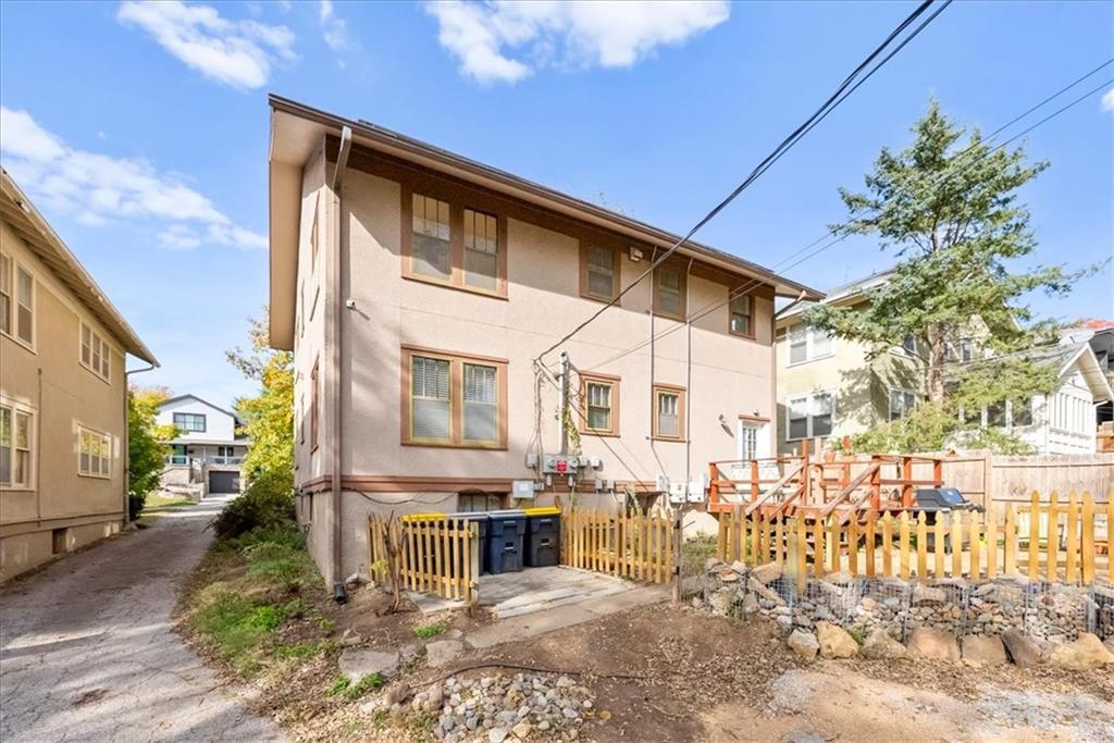 West Plaza Duplex - Updated by present owner. 2 units (first and second floor) 2 bedrooms, 1 bathroom. Detached 2-car garage with garage door opener and 3rd off-street parking space. Fully equipped kitchen in each unit. 2nd floor unit has own washer & dryer. Full basement - additional washer & dryer, storage areas. *** Improvements to building were done with energy efficiency in mind, insulation in attic and exterior walls, solar panels, exterior stucco replaced and includes expansion joints, color in stucco (no need to paint).