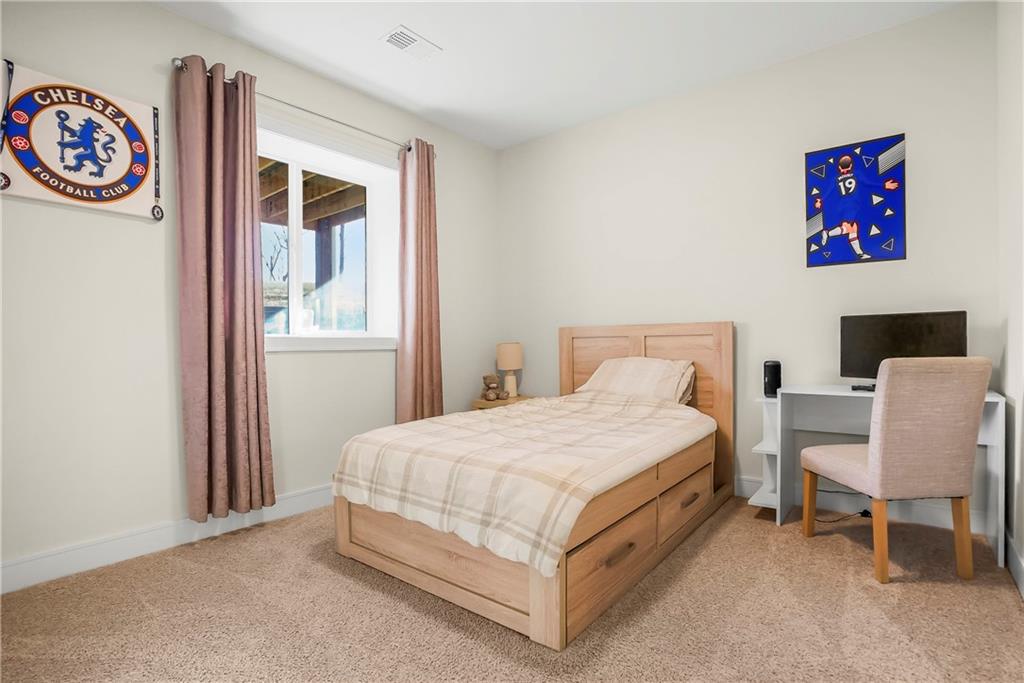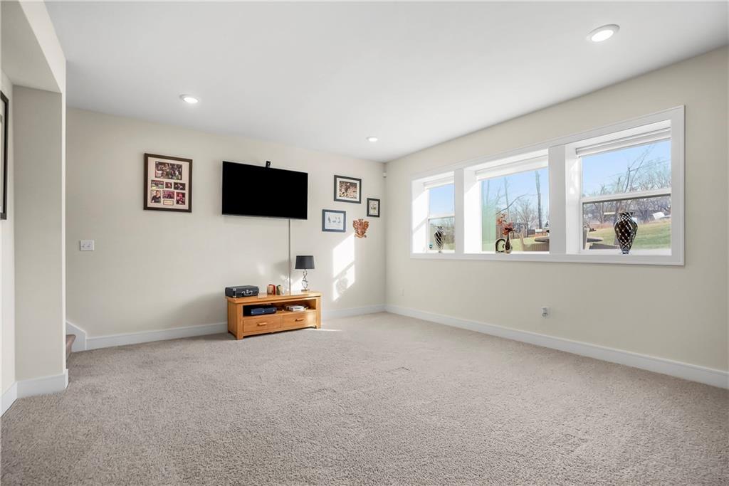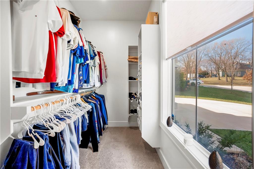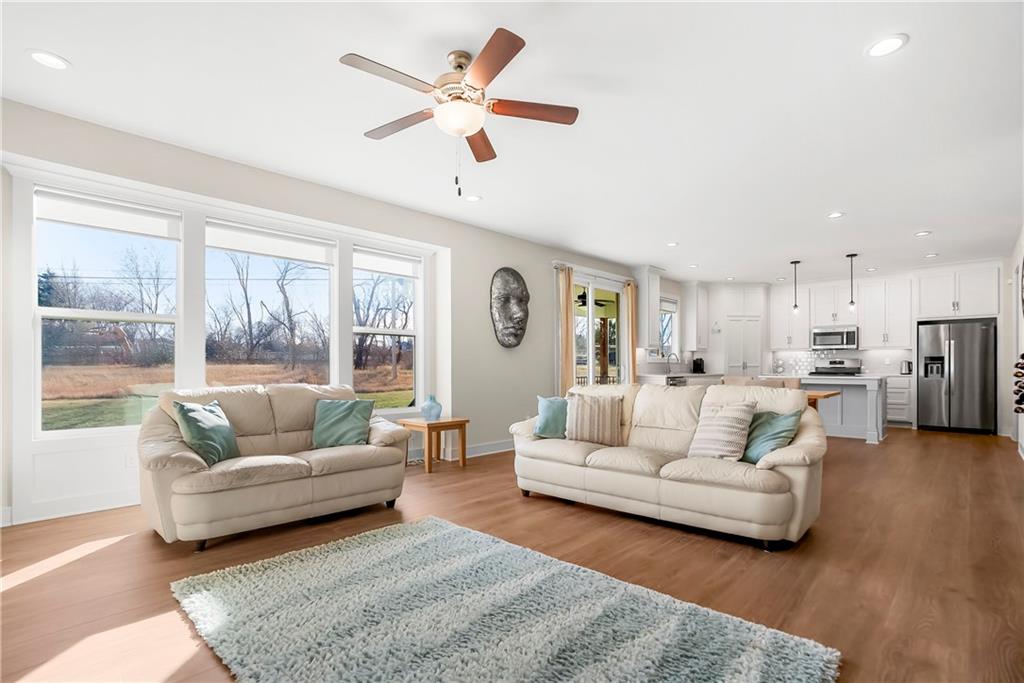 This beautiful 3 bedrooms and 2 and a half bath home is better than new. Main level Master bedroom with 2 bedrooms downstairs, including a finished Daylight lower-level rec room and full bathroom! Plenty of designer features to enjoy including an expansive covered deck, large custom windows throughout for natural lighting, white cabinetry, popular wide plank wood flooring, brushed nickel hardware, GE appliances with gas range, tiled shower in Master bath and mud room/boot bench area. Tons of storage, 3 car garage including a 4ft front extension! This home is situated on a cul-de-sac lot in the picturesque neighborhood of Lakeshore Meadows, surrounded by mature trees, in a western Olathe community near Lake Olathe. Lakeshore Meadows is less than 10 minutes from K7/I-35 hwy and a short drive to the Lake Olathe recreation center, Prairie Center Park, KC Winery, and the NEW Cedar Niles trail system.