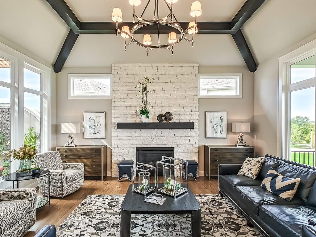 The Courtland Reverse by Don Julian Builders--UNDER CONSTRUCTION! THIS HOME IS NOT COMPLETED--the photos shown are from another Courtland MODEL plan that is completed. So much WOW! Fabulous plan with a terrific courtyard with converging doors off the entry--perfect for relaxing and enjoying nature! Useable, large First floor office/den views this indoor/outdoor space! Pub bar area across from the courtyard--enjoy entertaining-great places. FOUR car garage! Great room with vaults and beams--Large dining area with vaults and beams, too! Primary bedroom suite with vault and beams, light, extra-large shower, and laundry ROOM off the huge closet. Second bedroom on first floor w/private bath. Drop station with cubbies by back door. Large kitchen with massive (double slab) island and lots of space. Hidden, back stairs to Lower level: jumbo REC room, extra-sized wet bar; 1/2 bath. 2 additional, sizable bedrooms (each with their own bath and walk-in closet). SO much light! Enjoy Riss Lake amenities: including 3 pools, tennis courts with pickle ball lines, playground, splash pad, walking trails, 134-acre lake for fishing or boating, more!