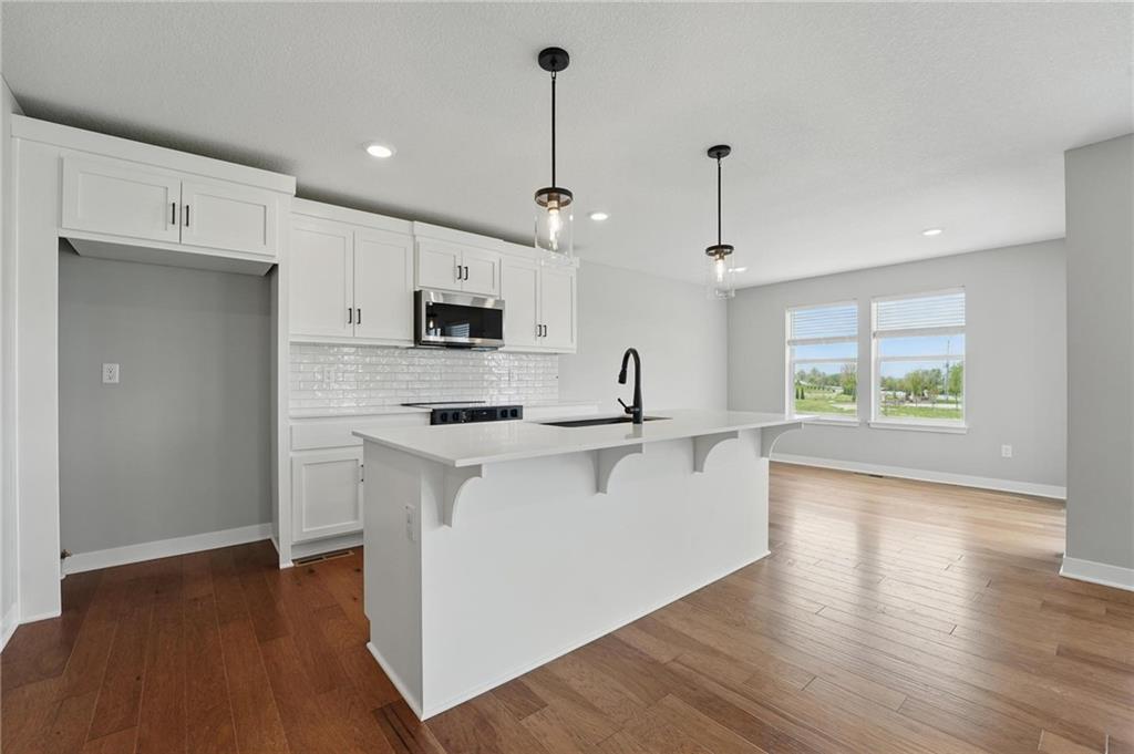 UNDER CONSTRUCTION!! The Saffron floor plan by award winning Summit Homes in Lees Summit School District! Spacious main level for daily living with all bedrooms and laundry on the upper level. Large island with quartz countertops in the kitchen that overlooks the Dining room/Great Room. Large Primary Bedroom with an open spa-like bathroom. The Primary Bathroom has an oversized vanity with double sinks with quartz countertops and a walk-in shower. Beautiful landscaping and this one backs to green space! Possible 5th bedroom with basement finish. Amenities include the luxury of a beautiful two-acre pond, pool with open-air clubhouse, playground, covered pavilion **This is a dirt lot. Please see the Saffron model at 8733 SW Edgewater Dr**