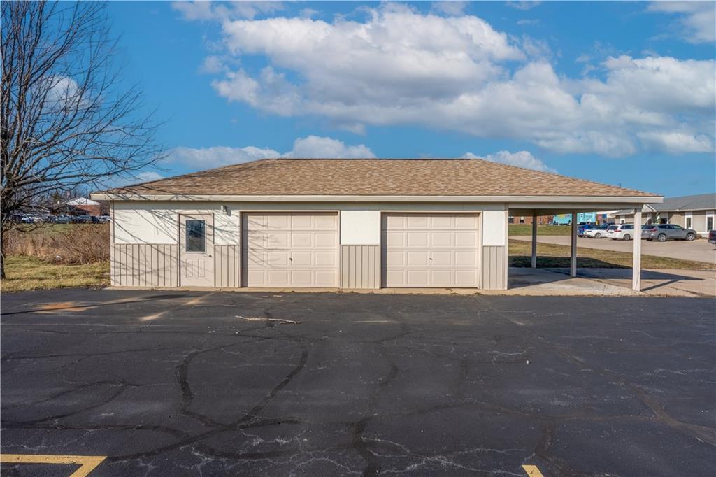 This 4,500+ sq. ft. commercial listing features two individual units, offering multiple business opportunities in a high-visibility location near Highway 50/W. Broadway Boulevard. The property benefits from excellent exposure to heavy daily traffic, making it well suited for a variety of commercial uses. Each unit is available for lease at $800 per month on an annual lease basis. The building includes a basement area that provides convenient space for storage or office supplies with built in wooden shelving. Additional features include a detached warehouse/garage equipped with overhead doors and an attached carport, ideal for deliveries, equipment, or inventory storage. Ample on-site parking is available for both staff and customers, ensuring ease of access and convenience.