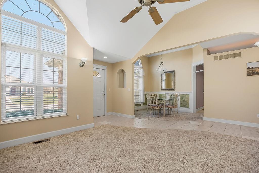 Discover this beautifully maintained home in the highly desirable 55+ community of The Meadows of the Good Ranch. 3 bedroom, 2.5 bathroom, and a 2 car garage. The primary bedroom, featuring an ensuite bath with a shower, a relaxing walk in jetted tub, and a spacious walk-in closet, is thoughtfully situated on one side of the home, ensuring optimal privacy from the two additional bedrooms and shared full bathroom on the opposite side of the home. Key features of the home include: elegant formal dining and living room with soaring ceilings, additional cozy living space for relaxation and entertainment, expansive kitchen, custom tile work, crown molding that adds a touch of sophistication, and a covered back patio perfect for outdoor enjoyment. The full unfinished basement, complete with a half bath, offers ample storage or the potential for additional living space tailored to your needs. HOA handles snow removal, lawn maintenance, and up keep of common areas including the amazing walking trails throughout the community. Don’t miss out on this incredible opportunity! Schedule your showing today!
