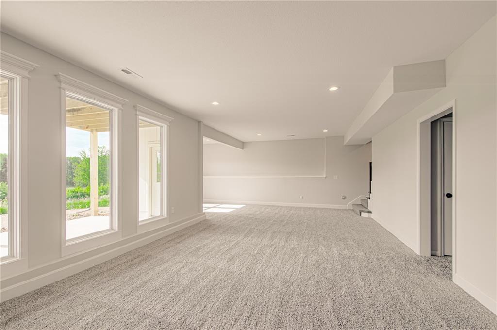 **BACKING TO TREES**The "KENNA" by Robertson Construction sits on a PREMIUM LOT with a Beautiful setting. This Gorgeous Reverse 1.5-Story offers 4 bedrooms, 2 on the Main Level, 3 Full Baths and is built with 2x6 exterior walls, an upgraded insulation package along with a super high efficiency heating and cooling system! An Open Layout features Floor to Ceiling Windows showing off the peaceful view, Stone Fireplace accented with Floating Shelves, Kitchen Island, Solid Surface Countertops, Custom Built Cabinets and WALK-IN PANTRY. Oversized Covered Deck is accessible from both the Master Suite and Breakfast Area. The PRIVATE Master Suite has a luxurious Master Bath and WALK-IN Closet that conveniently adjoins to the Laundry Room. You will find more Finished Square Footage in the WALKOUT Basement featuring Floor to Ceiling Windows, 2 more Bedrooms, Full Bath, LARGE FAMILY ROOM and a generous amount of storage! PATIO at WALKOUT. Located in the NKC/Staley High School District! Great subdivision amenities including a pool, clubhouse, tennis/basketball court and play area.